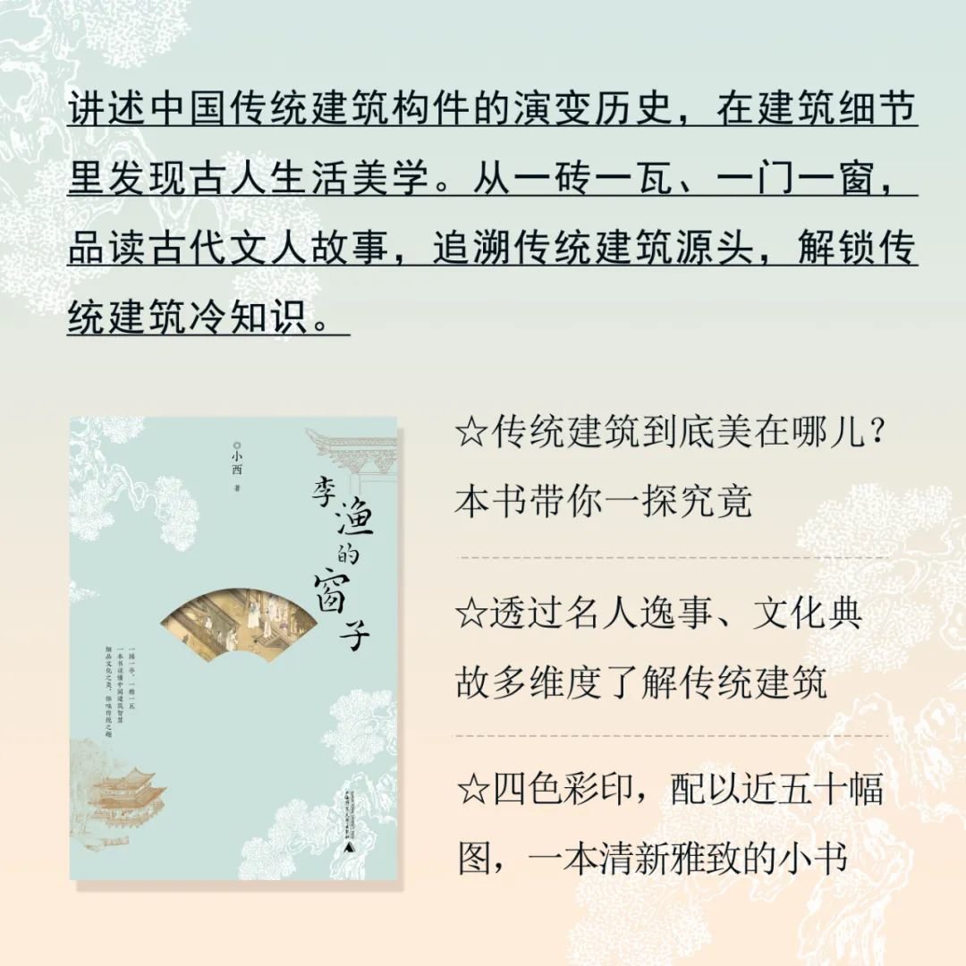 传统建筑到底美在哪儿?这本《李渔的窗子》带你一探究竟。这是一部建筑文化随笔集,也是一堂传统生活美学课。作者从一砖一瓦、一门一窗、一亭一栏入手,讲述中国传统建筑的演变历史,发掘建筑细节里隐藏的古人智慧与生活美学。