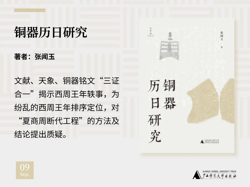 张闻玉先生采用“三证合一”的论证方法,将文献记载、青铜器铭文与实际天象三者紧密结合,整理、分析数十件王年、月序、月相、日干支俱全的西周铜器铭文,利用十项“铜器历日研究条例”规则,以“月相定点”为核心理论,一一落实这些铜器记载的绝对纪年。针对自西汉刘歆以来及至“夏商周断代工程”的种种结论,作者指出“二重证据法”的不足及“月相四分”的失误,在强调“月相定点”的基础上,考证出西周的王序和王年,对考古界和历史研究界的断代既有补充,也有纠正。