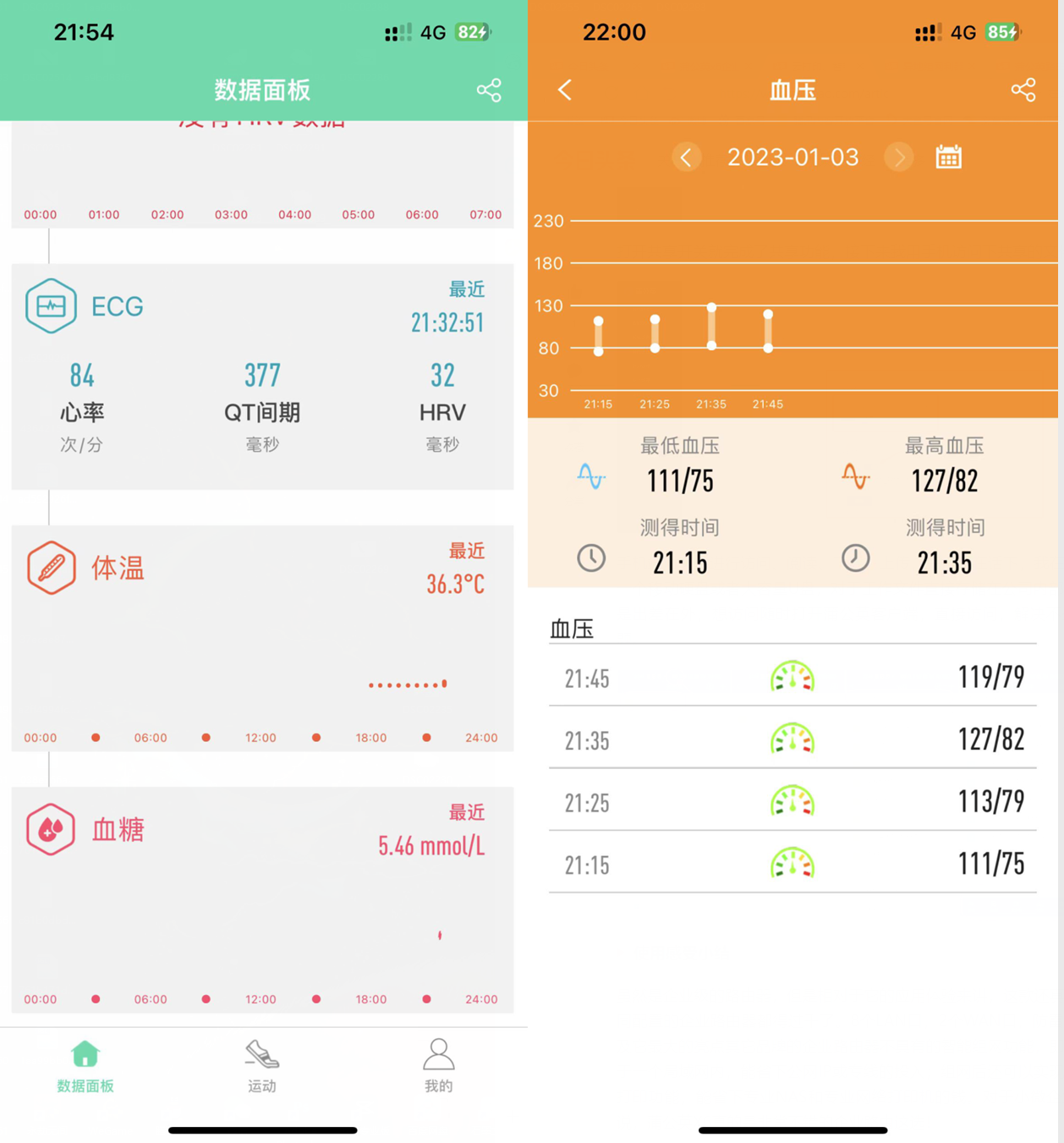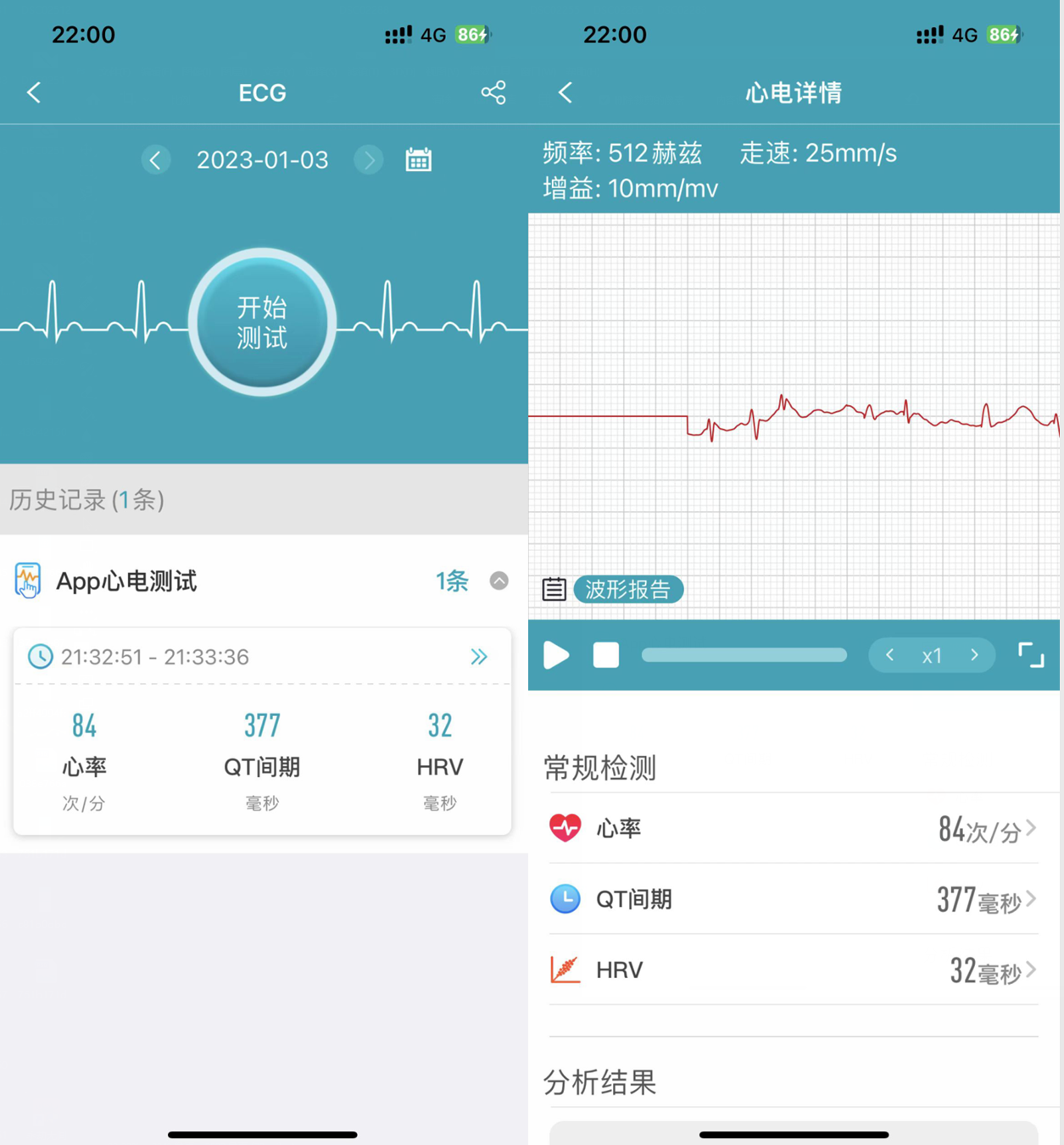 而且,上面所说到的这些检测功能得到数据都会同步到APP中,最终对这些详细的健康数据进行记录并整理,如果我们需要查看某项健康数据,只需要在APP中打开相应页面,就能查看到近期的健康数据情况。更关键的是,通过这些详细的数据信息,可以对32种疾病筛选、HRV跟踪测试、洛伦茨散点等进行分析报告。