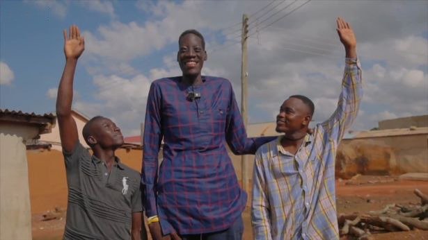 来自加纳北部的29岁的苏莱曼纳阿卜杜勒萨米德身高惊人地达到了9英尺6英寸(约合2.89米)。他之所以长得这么高,是因为他患有一种罕见的马凡氏综合征,这种遗传疾病会影响身体的结缔组织,导致四肢异常长。但这样的身高是否可以让他成为有史以来最高的人,还有待考证。在他生活的加纳农村小诊所,并没有足够长的卷尺来测量他的身高。一位震惊的护士告诉他:“你已经长得比尺子还高了。”