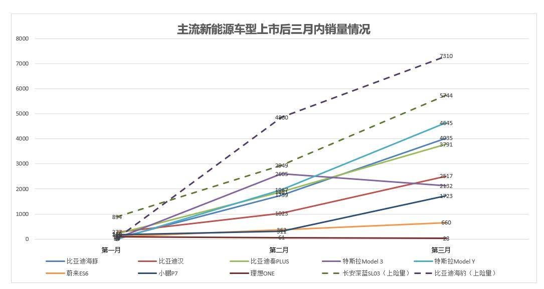数据显示,深蓝SL03在上市后第3个月就实现了5744台的月上险量,仅上险量就超过一众车企公布的同期(上市后第3个月)销量。作为对比,在上市后第3个月,特斯拉Model Y销量为4645台,小鹏P7为1723台,比亚迪汉和秦Plus分别为2517台和3791台,蔚来ES6和理想ONE则分别只有660台和28台,均不及深蓝SL03。依靠强大的体系力,长安深蓝展现出极致发展速度。