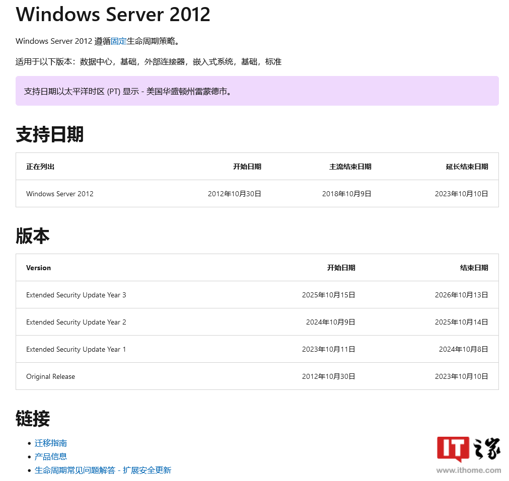 IT之家 1 月 5 日消息,微软已经向用户发出提醒:Windows Server 2012 和 Windows Server 2012 R2 所有版本的扩展支持将于 10 月 10 日结束。