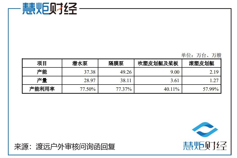 招股书显示,2022 年 1-6 月,渡远户外产能利用率出现明显下降。其中,房车游艇配套产品产能利用率由 94%下降至 77%,水上休闲运动产品产能利用率由 95%下降至 44%。