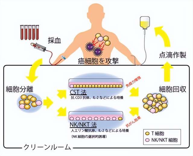 癌症免疫细胞治疗,是从我们的身体中把与癌细胞和病毒等的异物战斗的免疫细胞患者从血液中取出,在实验室培养增加数量及重新识别癌细胞的能力,回输到体内后,再次恢复患者免疫的力量,攻击肿瘤的治疗方法。