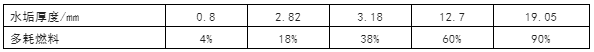 (1)浪费大量燃料:因为水垢的导热系数只有钢材的几十分之一,所以当受热面结垢后会使传热受阻,为了保持锅炉一定的出力,就必须提高火侧的温度,从而使向外辐射及排烟造成热损失。由于蒸汽锅炉的工作压力不同,水垢的类型及厚度不同,所浪费的燃料数量不同,根据试验和计算,水垢的厚度和损耗燃料有如下比例: