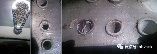 8)镀铜:设备中存在含铜材质,在金属表面析出形成一层黄色的铜,容易氧化成铜垢。