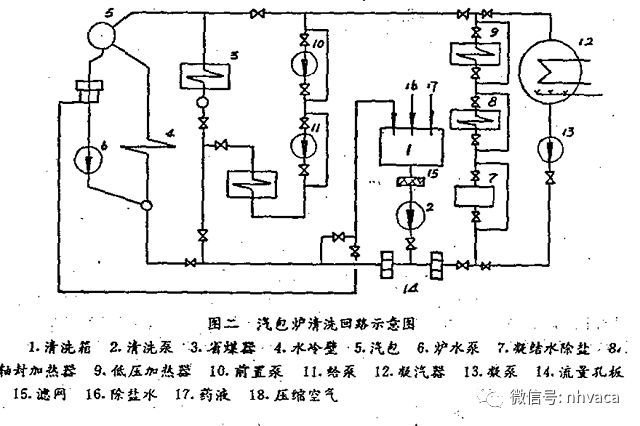 化学清洗前,先用工业水对整个酸洗系统进行大流量冲洗,再用除盐水冲洗。冲洗掉系统中的沉积物。冲洗流速越大越好。