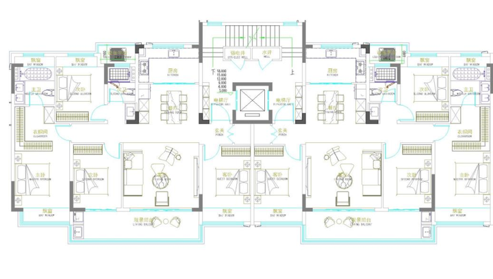 其中洋房设计为2梯4户,内部为4室2厅2卫的布局,格局较方正,四开间朝南,采光充足;双联阳台连接客厅与次卧,景观视野开阔全屋飘窗设计,套房设计式主卧,居住舒适度较高。