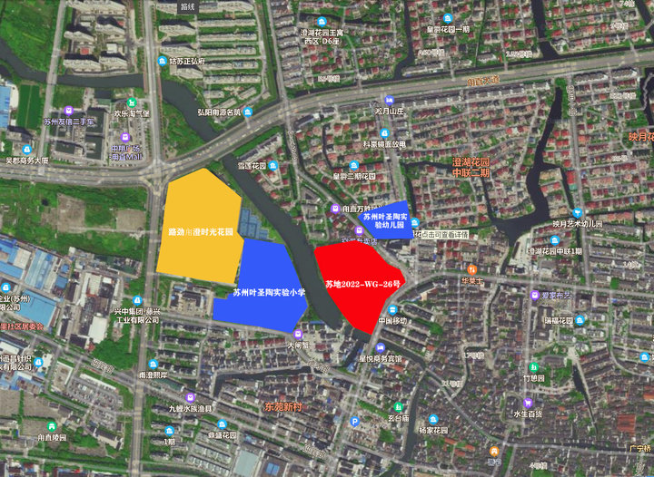 该地块与苏州叶圣陶实验小学仅相距一条甫里塘河道,大约100米左右;与叶圣陶实验幼儿园一路之隔,距离不到百米。