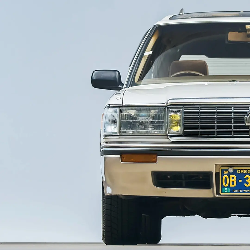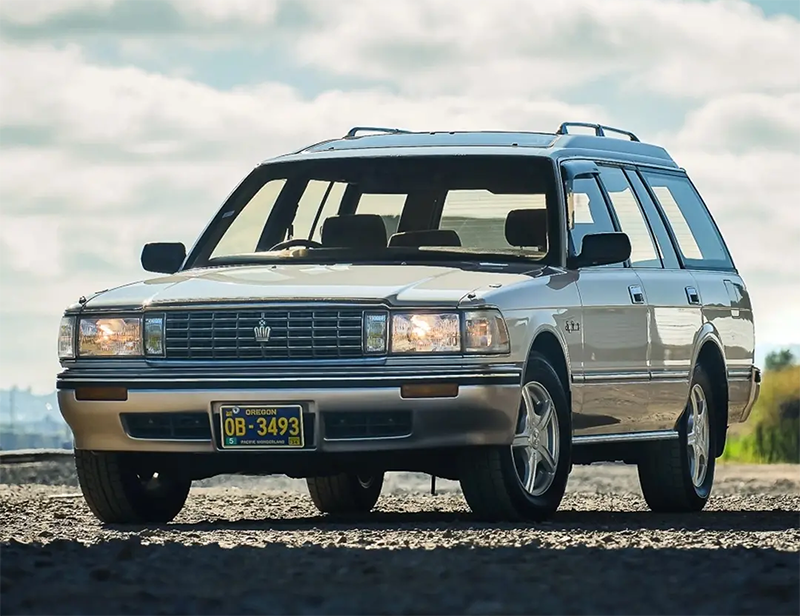 而图中这部1991年的丰田皇冠 super slaoon旅行车是1991年生产的,属于第八代皇冠,代号S130。