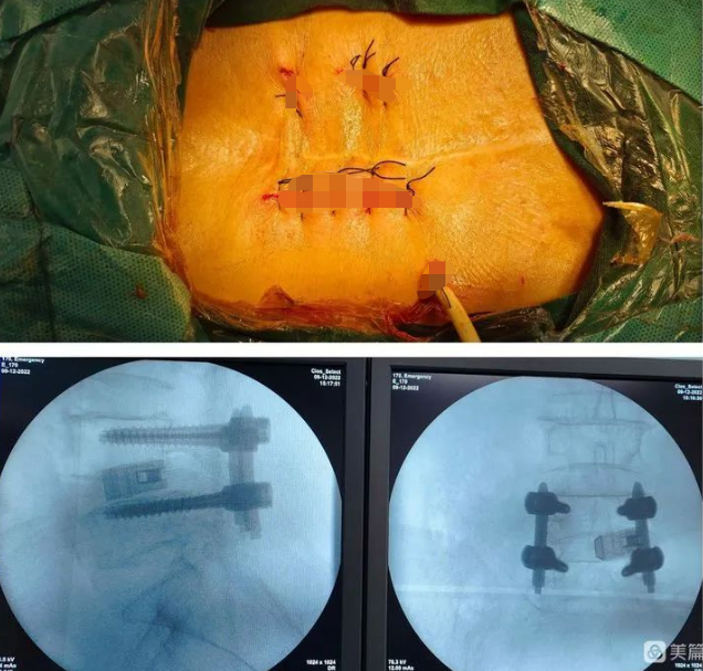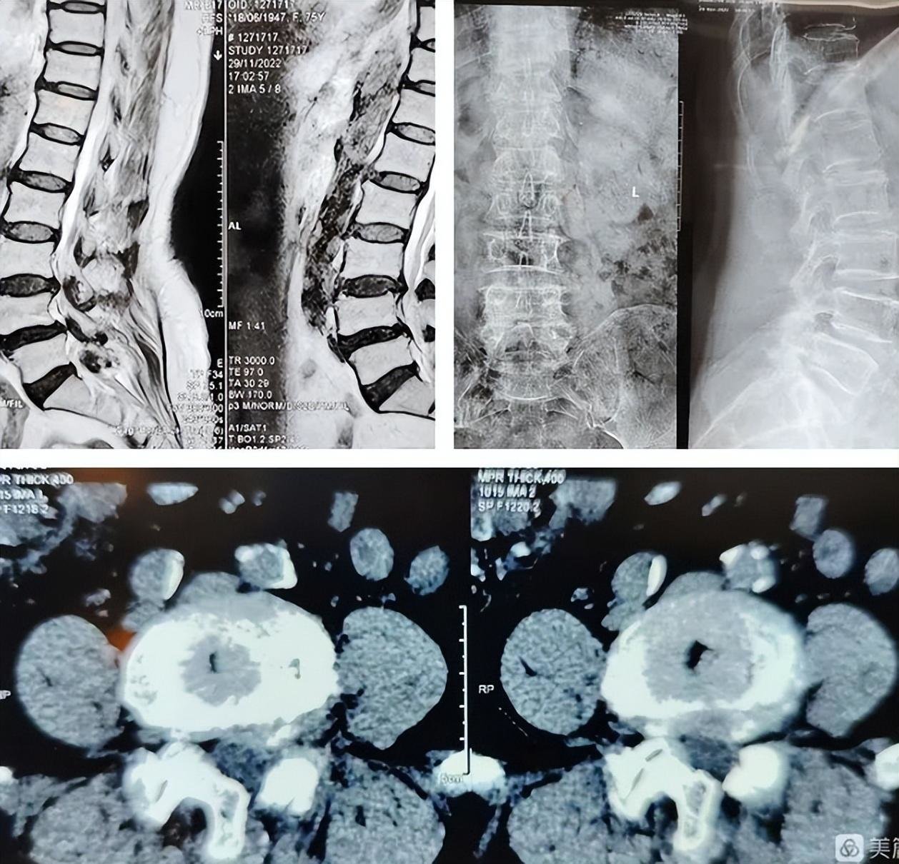 患者,女,75岁,20年前因腰腿疼痛曾行小开窗手术治疗者,但随着年龄增大,近年又出现腰腿痛症状,2个月前,突感下腰背部疼痛较前加重,坐卧难安,在当地医院行保守治疗后疗效不佳,建议行开放手术治疗。