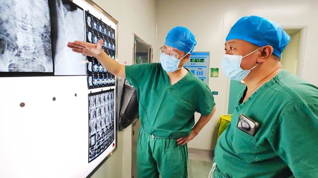 脊柱外科首席专家王文军教授和骨科副主任徐志刚主任则再次仔细核对手术细节。