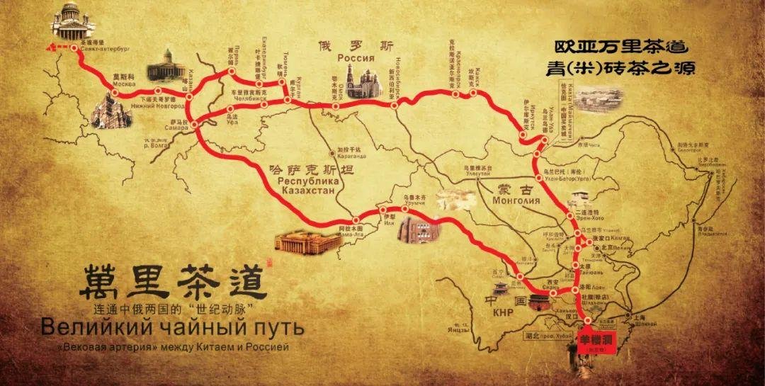 陈军海介绍,赵李桥砖茶制作技艺是从羊楼洞古镇起家并逐渐名扬天下。清朝的羊楼洞是万里茶道的重要生产加工集散中心,乾隆年间,砖茶顺长江、逆汉水、至黄河、到大漠,经俄罗斯的恰克图转口销往欧洲。