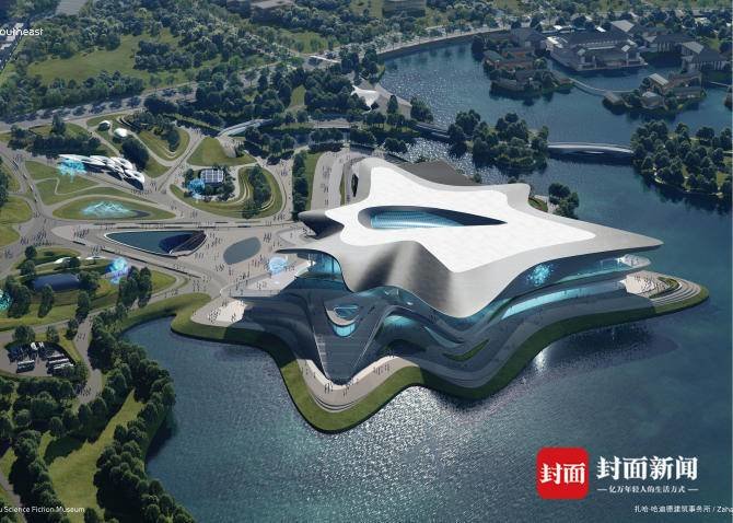 从规划效果图上看,“星云状”的科幻馆屹立于菁蓉湖畔,振翅欲飞。“这一设计构思源自于对‘星云、科幻之眼、金沙与三星堆’等自然、人文元素的提炼。”杨晓磊介绍说。
