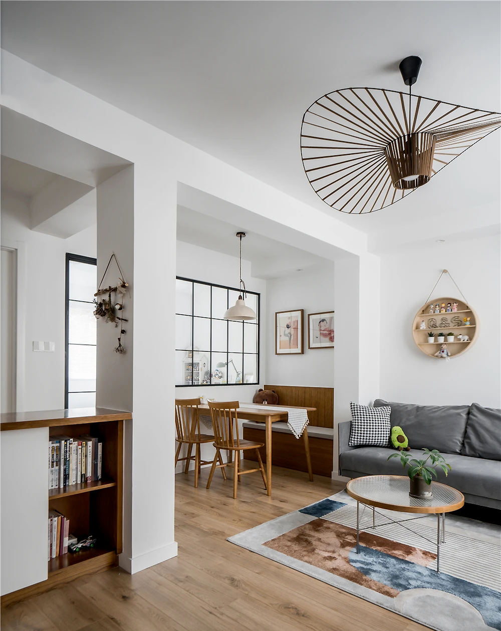 有些人以为北欧风家具中会使用很多地毯,其实北欧人的地毯使用只是局部,不会全屋用地毯,他们倾向于使用木质地板,特别是淡色系的地板,而且除了浴室以外的空间,都用木质地板打造。