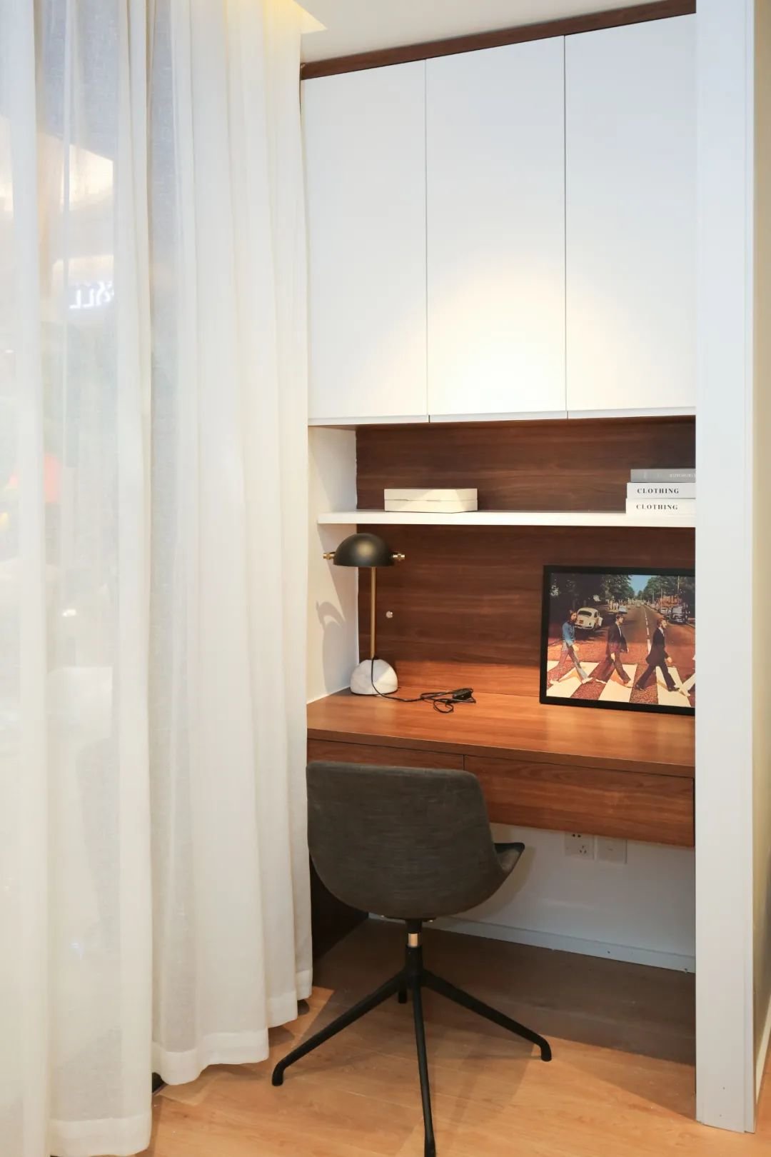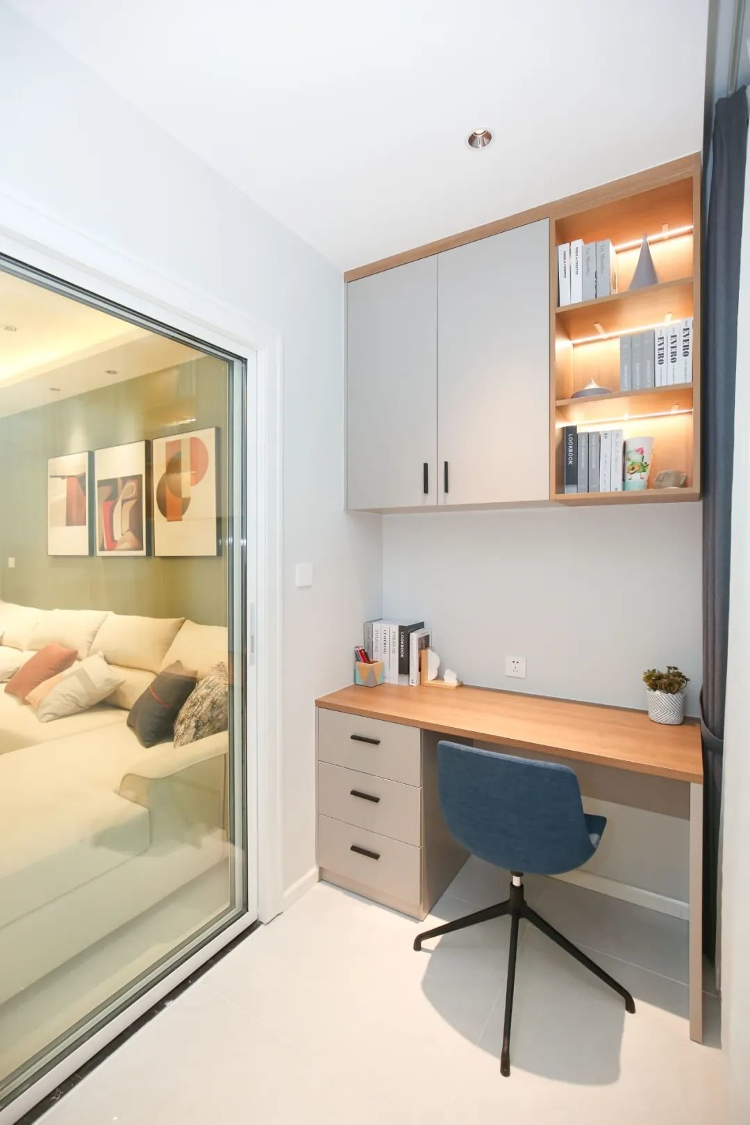 在家办公、充电学习是现代生活里必不可少的内容,如果没有理想的独立书房,阳台这样的明媚空间也是一个不错的选择。定制书架、书桌,就能营造一个半开放式学习区。