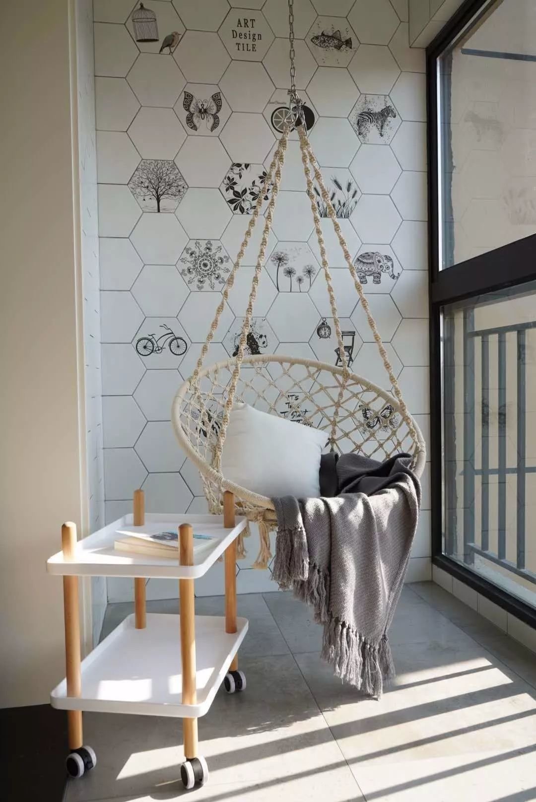 不必大老远寻找休闲民宿,阳台上摆上一盏藤制摇篮,就是充满浪漫风情的休闲角,宅家看书、追剧,窝在里面别提多惬意了。