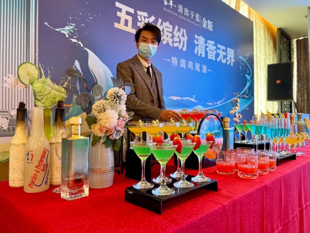 绚丽缤纷的花式鸡尾酒表演环节,全面展示了宝丰酒的年轻化优势和清香的无穷魅力,得到了在场观众的纷纷点赞,将晚宴气氛推向了高潮。宝丰·清出于蓝凭借着时尚有形,简约而不失稳重,清香纯正、绵甜净爽的优良口感,吸引了嘉宾们的频频举杯。