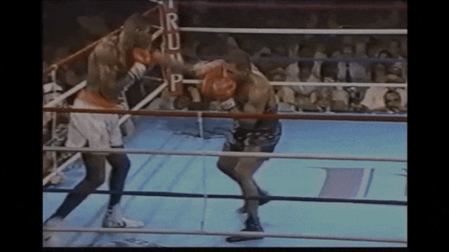 以下是泰森的近战勾拳比赛镜头