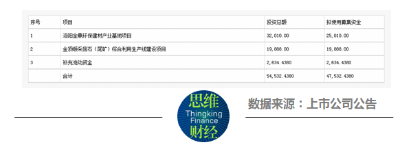 据公告,四川金顶发布非公开预案,将以4.54元/股的价格,向洛阳均盈发行不超过1.05亿股,拟募资4.75亿元用于洛阳金鼎环保建材产业基地项目、金顶顺采废石(尾矿)综合利用生产线建设项目、补充流动资金。