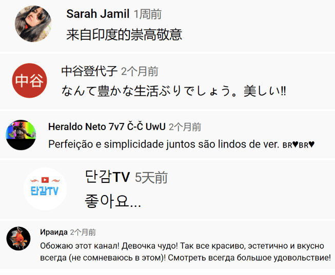 在她的账号评论区里可以看到世界各地的语言,英语、俄语、日语、韩语、法语,无一不是在赞美她、呼唤她回归。