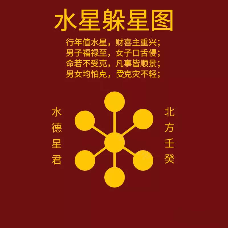 6、水星吉星(喜运。大人见喜,远行有财,添人进口。女人有桃花情爱之喜,男人不宜渡河。防色情口舌,乐极生悲,男人要躲星,女人要顺星。)