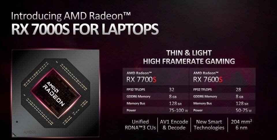 RX 7700S:75~100W 性能释放,RDNA3 架构,32CU,8GB 18Gbps GDDR6 显存