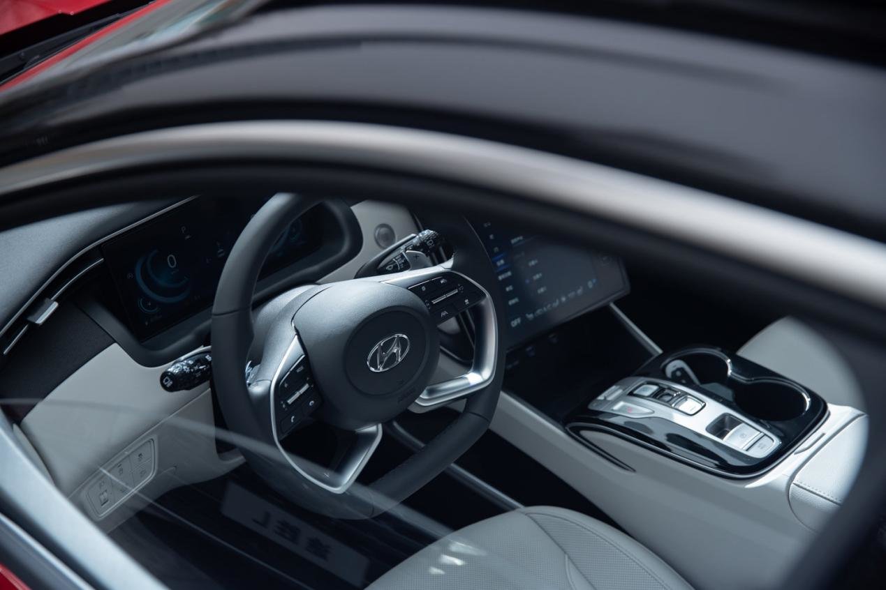 内饰采用10.4英寸竖置中控屏和10.25英寸开放式液晶仪表盘,由中控台向两边延伸的线条组成了环抱式座舱,按钮式换挡机构以及一旁的杯架组合下来让内饰豁然开朗,简洁中透露出实用。
