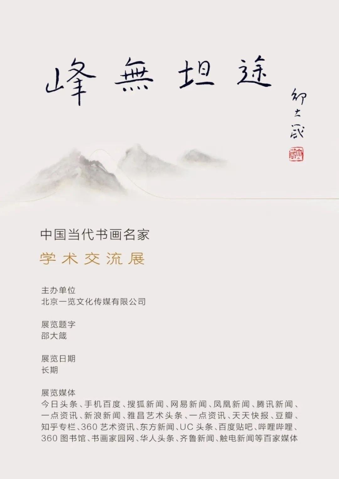 峰高无坦途,风景却无限。本次画展将以线上艺术展的方式呈现中国画作品、油画作品、书法作品等多种艺术形式。参与展览刊登发布的有今日头条、手机百度、搜狐新闻、凤凰新闻、雅昌艺术网、艺术头条、新浪艺术、腾讯艺术等近百家主流艺术媒体及门户网站。永久在线展示。