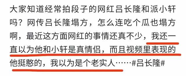 网红吕长隆疑似塌房,与派小轩合作走红,前女友小作文称其出轨——引言。