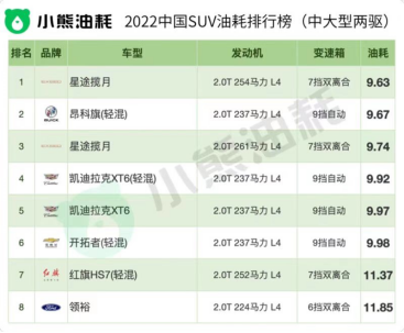 近日,汽车行业知名的车主生活类App——小熊油耗公布了《2022中国SUV年度油耗排行榜》的结果:星途揽月以9.63L/100km的实际综合油耗击败别克昂科旗、凯迪拉克XT6、雪佛兰开拓者等合资轻混车型,夺得“中大型两驱SUV第一名”。即便是在中大型四驱SUV Top 10排名里,星途揽月也排名第五(前四分别为领克09插混、理想one、大通D90 pro柴油版、沃尔沃XC90轻混),综合来讲,星途揽月可以说是中大型SUV里成绩最好、最省油的传统燃油车。