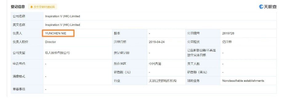 天眼查显示,这家港资公司的控制人,仍是聂云宸