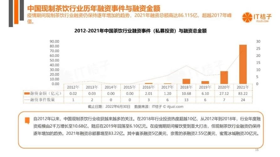 2021年奶茶行业融资总额高达83.22亿