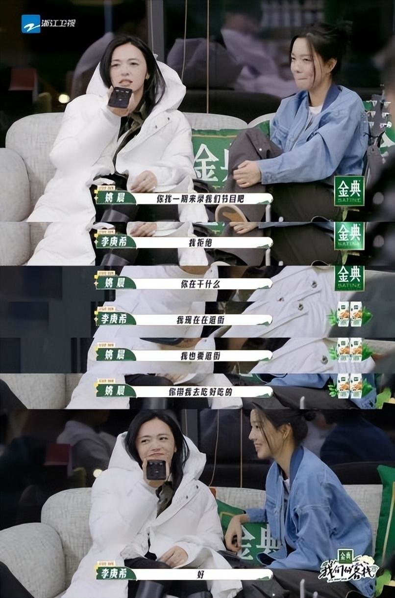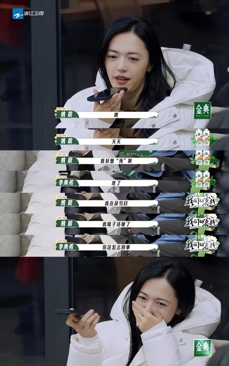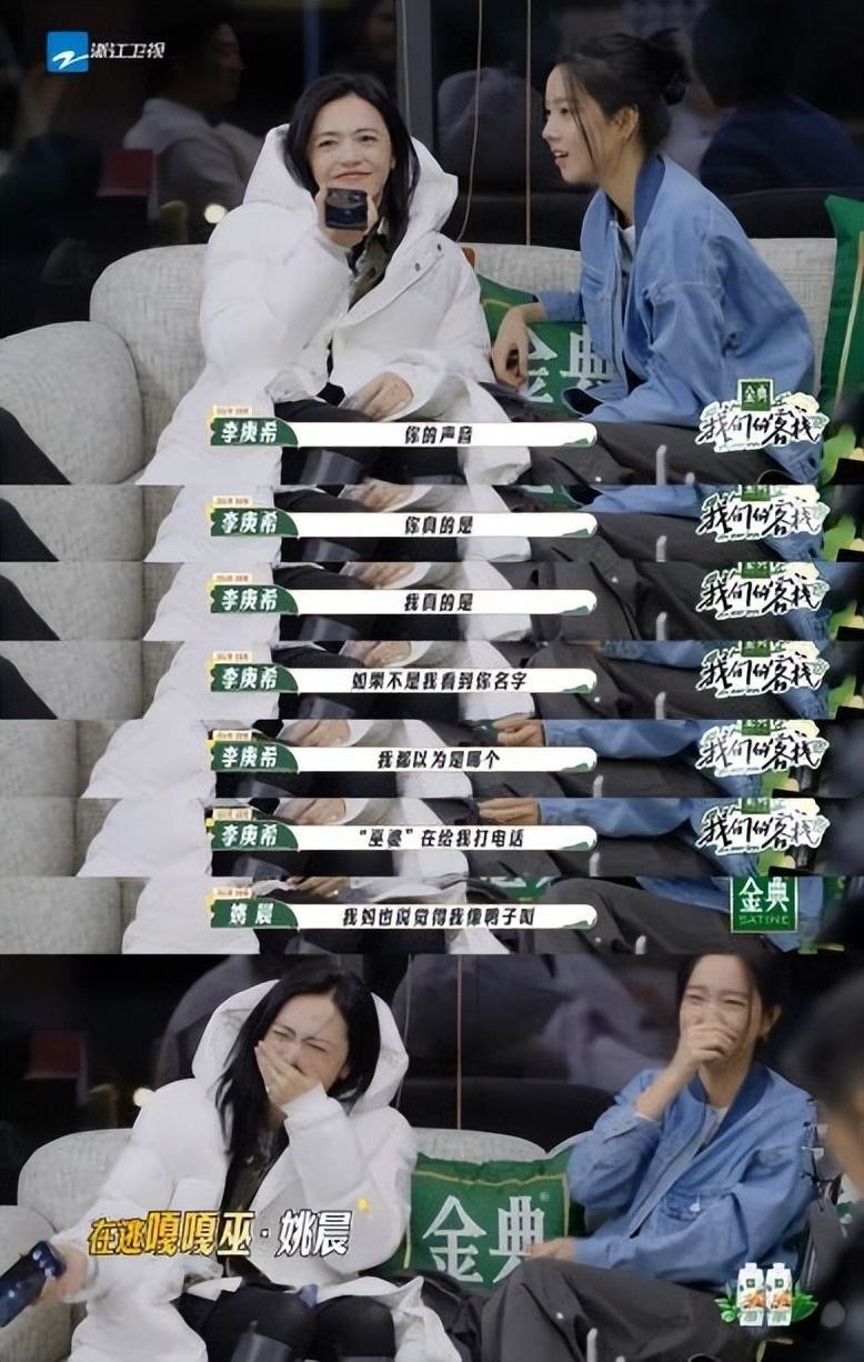 在打电话游戏环节,姚晨假装庄达菲给李庚希打电话,接起来就是一句“我好想亖啊”可以说是完全拿捏了当代年轻人和朋友相处的状态,为了伪装哑着嗓子用气泡音说话被吐槽像巫婆也没有表现出有不悦的情绪,反而笑得比谁都开心,真的是没有包袱,怪不得网友会喜欢,这种没有架子开得起玩笑的姐姐谁会不爱呢!