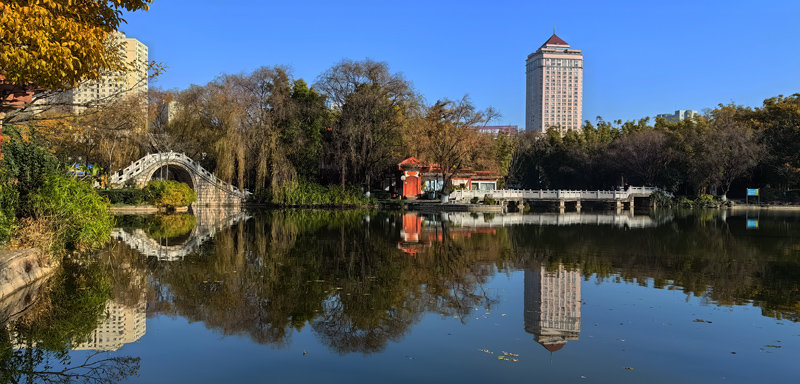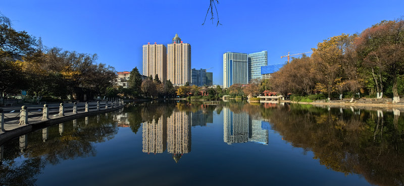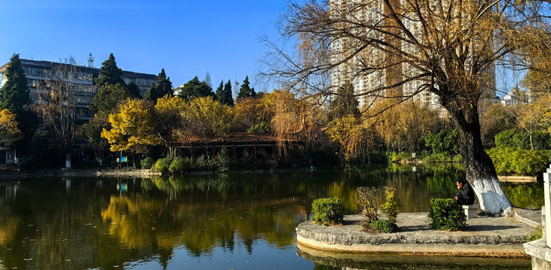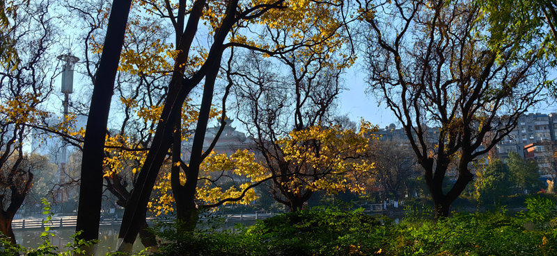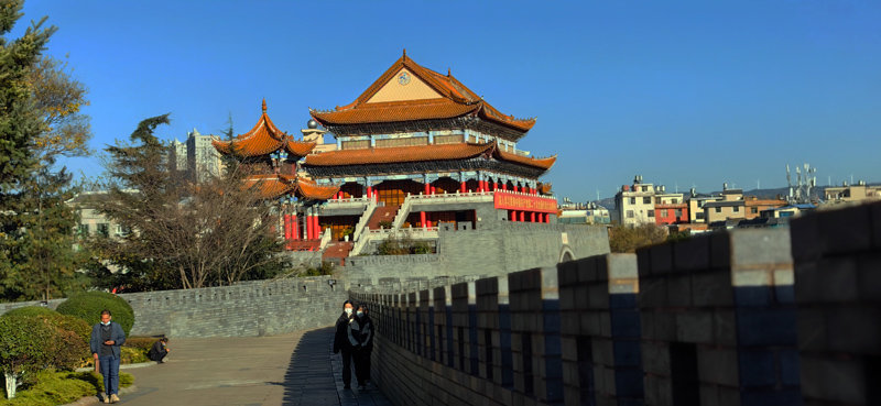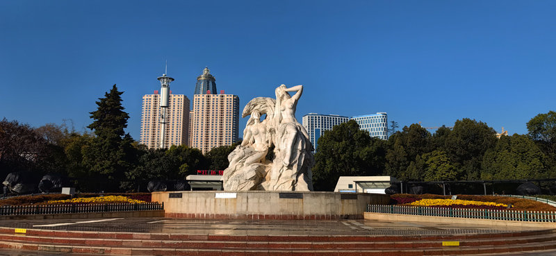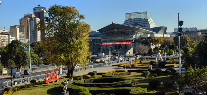 冬日阳光下的麒麟城,湛蓝的天碧空如洗,宜居的城清洁靓丽,展现了“曲靖-一座温暖人的城市”冬景魅力。
