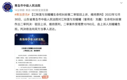 去年4月,江秋莲起诉刘鑫“侵害江歌生命权”一案在青岛开庭,审判结果要求刘鑫赔偿江母各项经济损失和经济赔偿将近70万元。