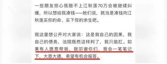 她竟然在网络表示因为自己长期遭到网暴,已经失去了工作,没有赔偿能力,希望网友帮忙募捐这笔赔偿款!