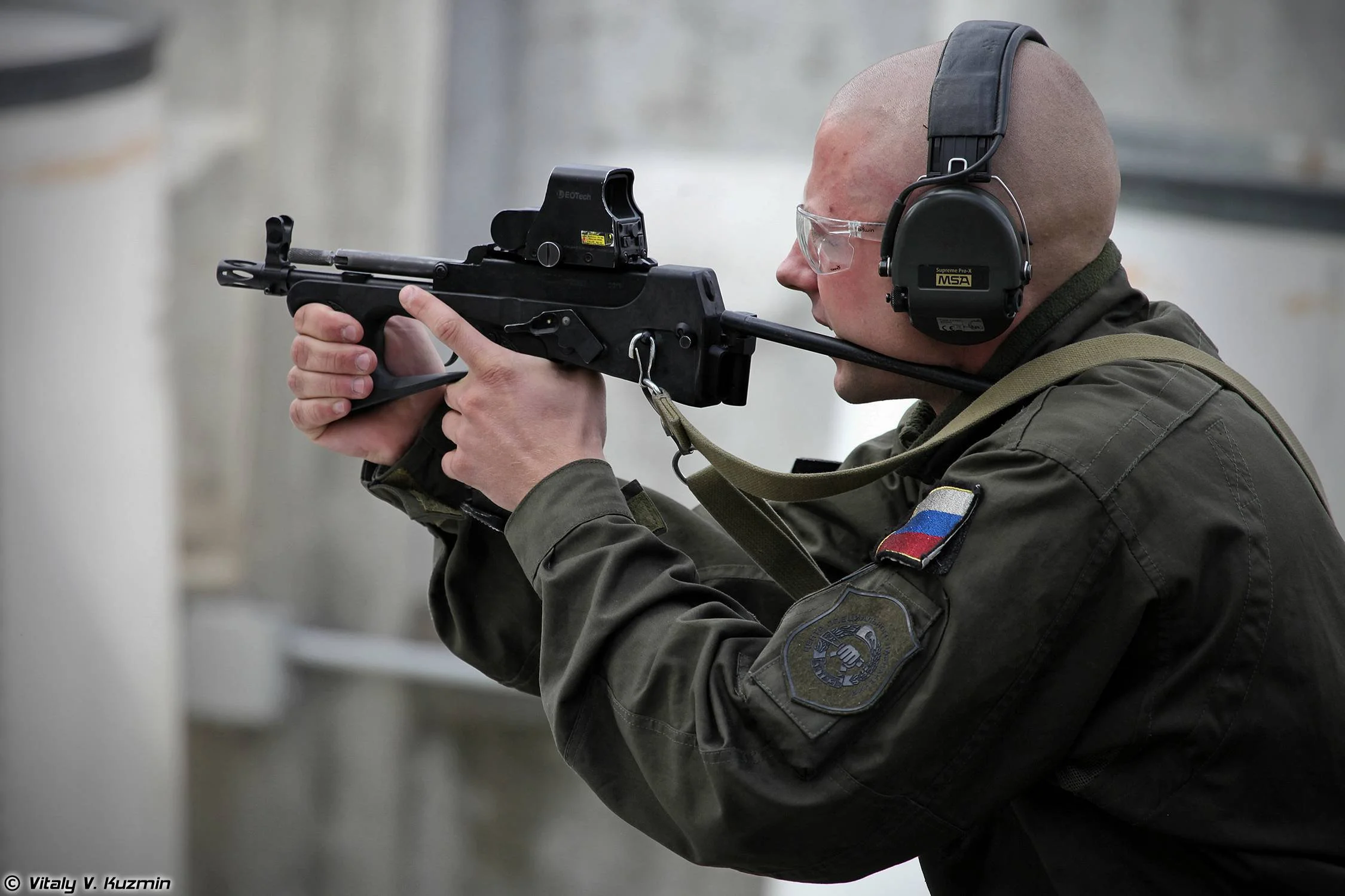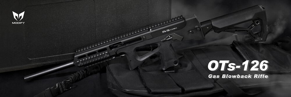 这把枪在2018年的时候,又推出了一个民用款的OTs126,大体上就是在原枪的基础上,去掉了全自动射击,延长了枪管,加上了一圈带战术导轨的护木,机匣尾部增加了一个可伸缩枪托,并且这枪托可以兼容AR15的枪托。毕竟,这货要卖给美国人。