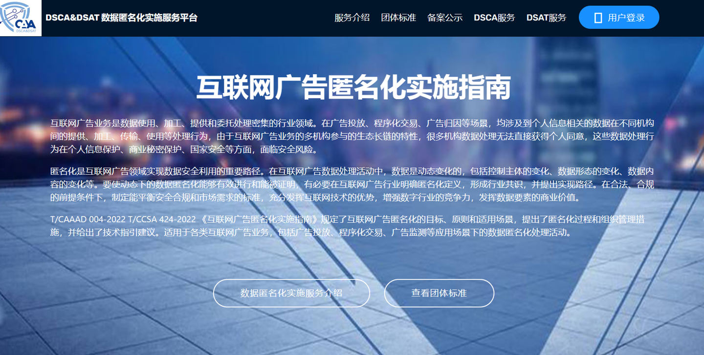 为更好地落实《指南》,与之相配套的“互联网广告数据匿名实施服务”现已通过中国广告协会平台正式上线。