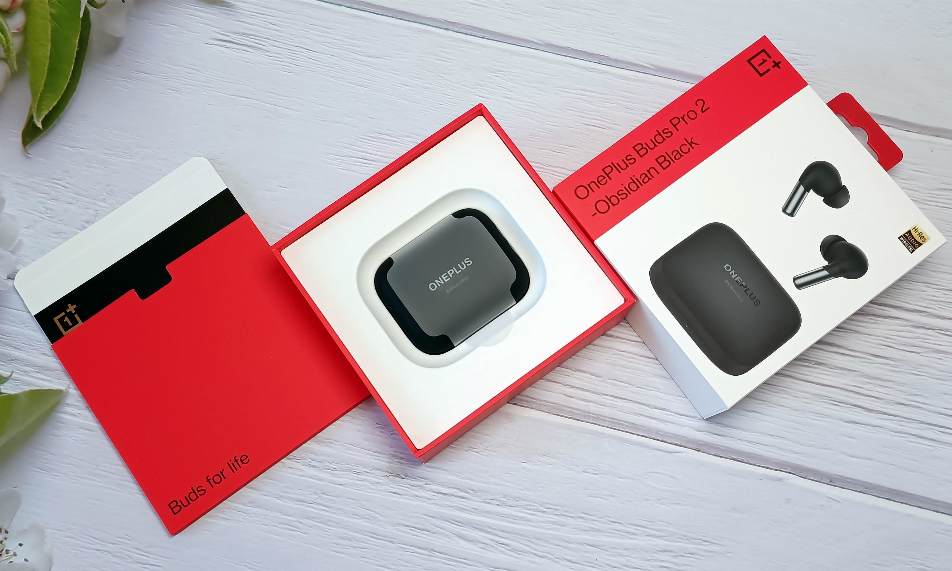 一加 Buds Pro 2耳机的包装盒与一加 11手机保持一致,经典的白+红配色,十分精致。最大的亮点就是右上角的Hi-Res认证标识,这是索尼推出的最新高品质音乐标准,拥有超越CD的音质。
