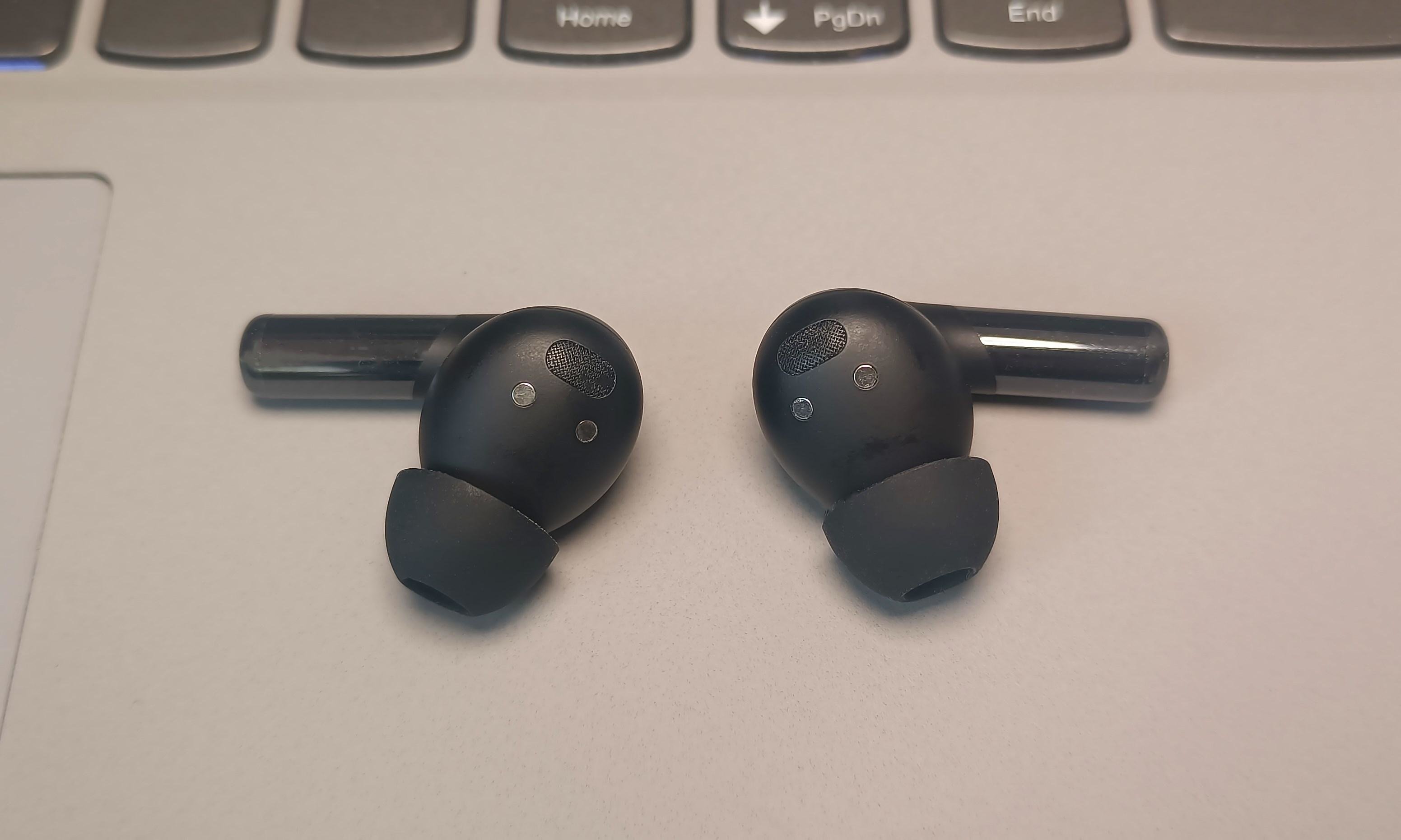 耳机采用了三麦降噪设计,其中Talk mic(通话麦克风)位于圆柱形握柄尾部,指向嘴部,主要用于拾取人声。另外,触控握柄采用的是灵敏的压感设计,支持双指的单捏、双捏、三捏和长捏等操作,避免了传统单根手指敲击手法的误操作。