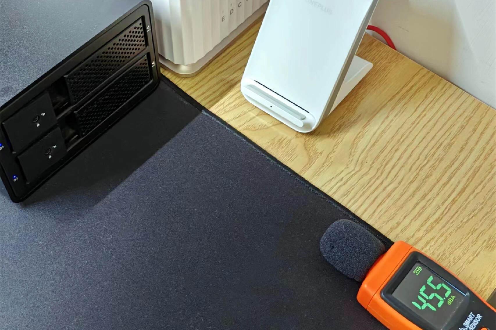 官方标称至高48dB降噪深度,降噪数据我没有专业设备来测,不过我也做了一个简单的测试,拍摄距离内约1米内,智能动态降噪模式下,对于硬盘柜发出的噪音,是听不到的,这降噪确实可以了。