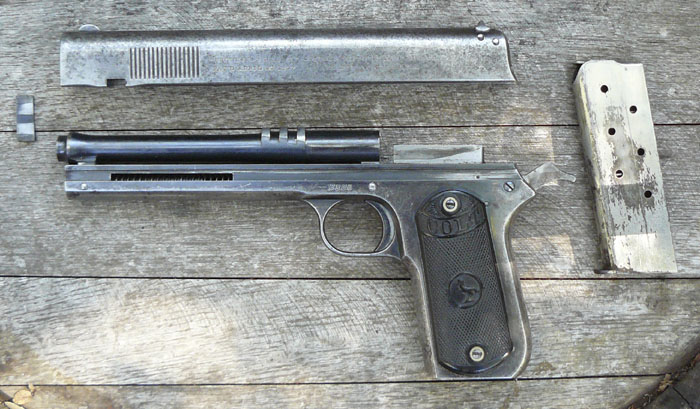 这种枪管短后座+枪管偏移闭锁的方式,最早来源于勃朗宁所设计的柯尔特M1900型手枪,提到这把手枪,可能知道的人比较少,其后世柯尔特M1911则是很多人都认识的。M1911手枪,就是早期非常典型的枪管短后座+枪管偏移闭锁的手枪。现代的很多手枪,都是以M1900为基础进行设计的,其改进点,也都是在闭锁结构上进行重新设计,但都是在这个框架下完成的。