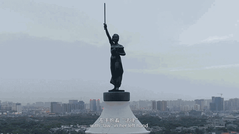 成都市检察院大楼穹顶,刻意放了一个怀抱法律文献,手持法律之剑的中国女性雕像,也让我体会到设计师的一片良苦用心,让我感动。