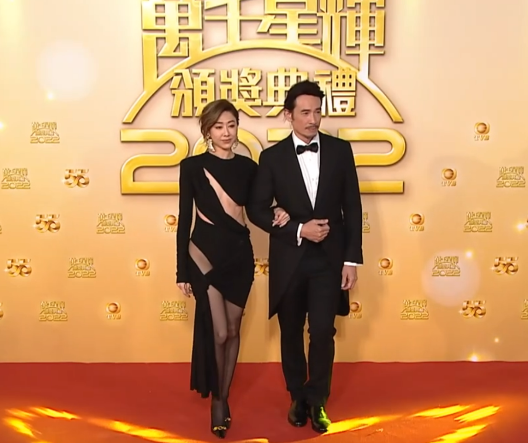 黄翠如和洪永城这对曾经的荧幕CP,造型反倒不是很搭。洪永城的宽松西装套装是时尚的,但黄翠如用贴头皮的长发配上花色繁复的长裙,就有点搞不懂她想表达什么时尚理念了。