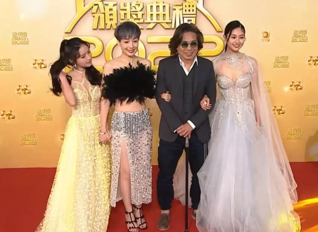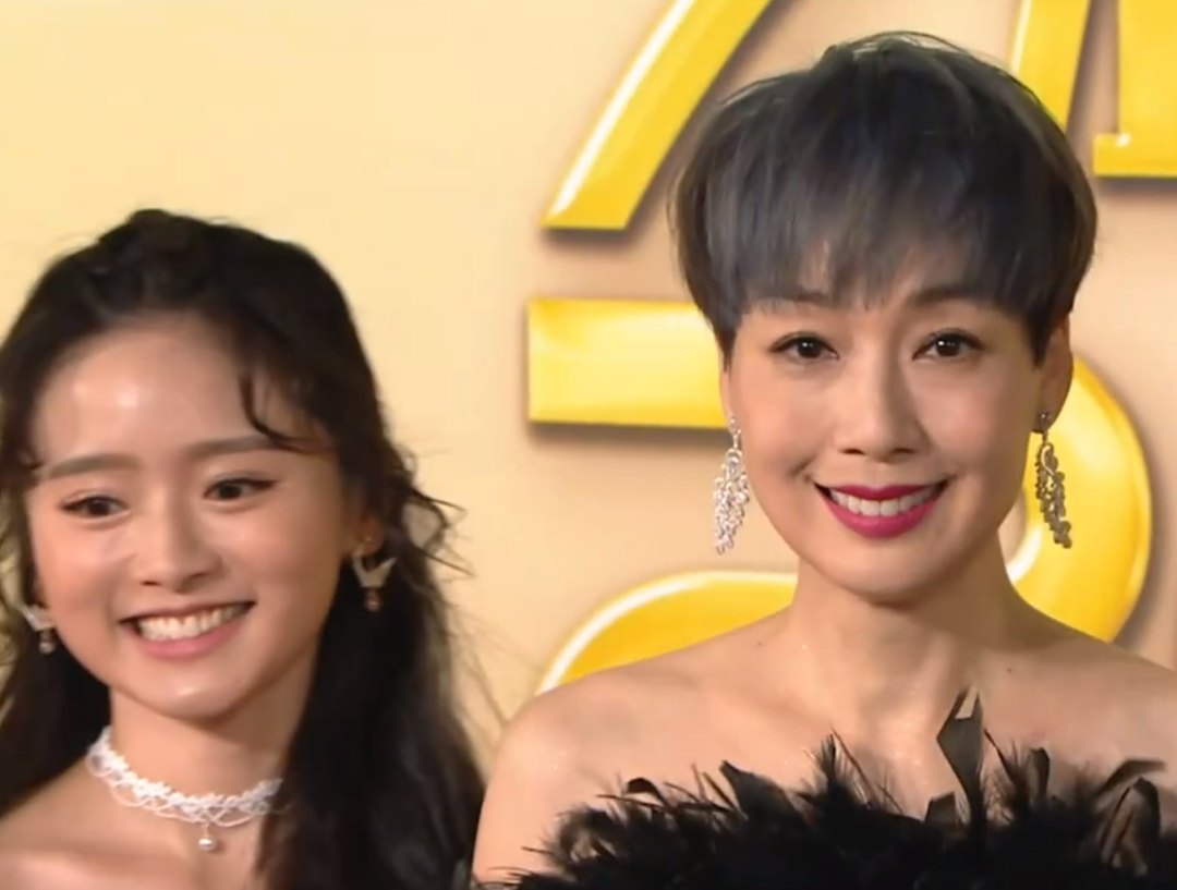 内地中年女演员大多保养得当,香港的中年女演员也一样。曾经也是港姐最上镜小姐的樊亦敏(右二),风采不输年轻女明星,卷发配亮片紧身长款礼服裙,很有风情。