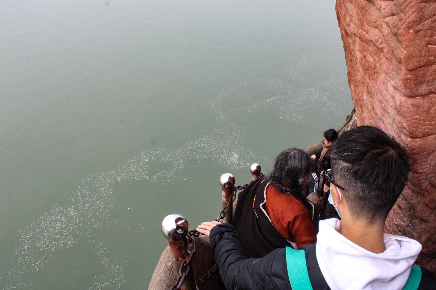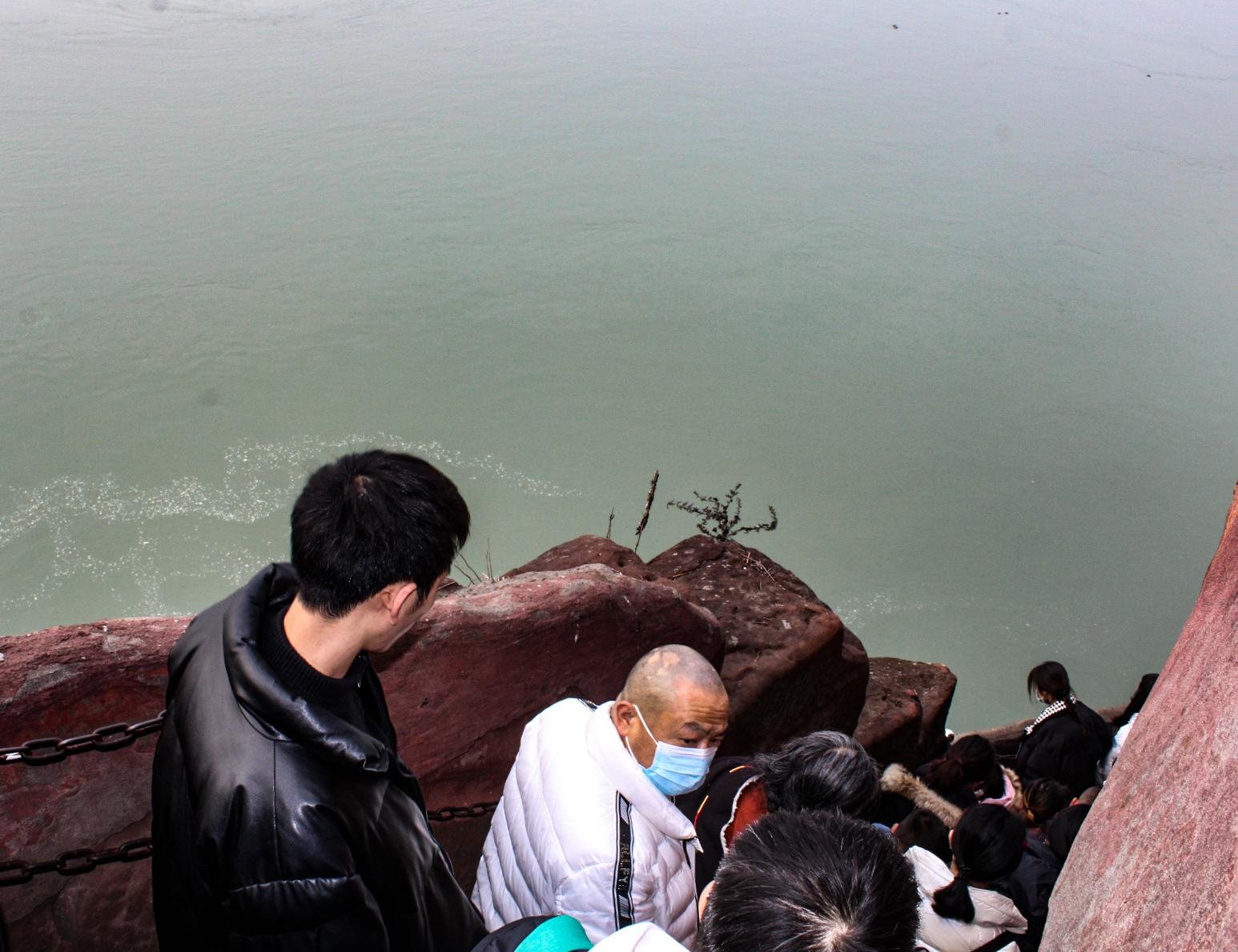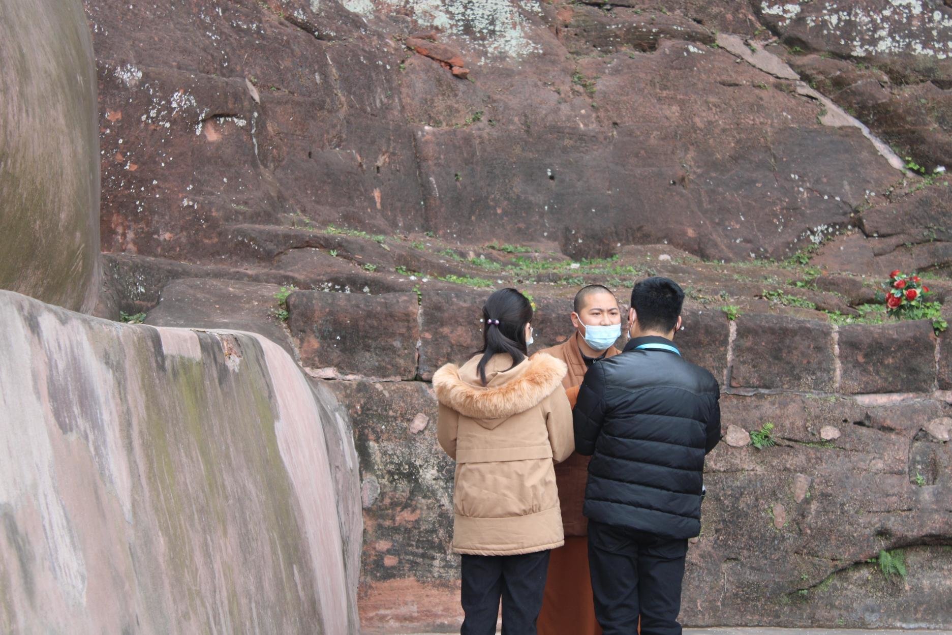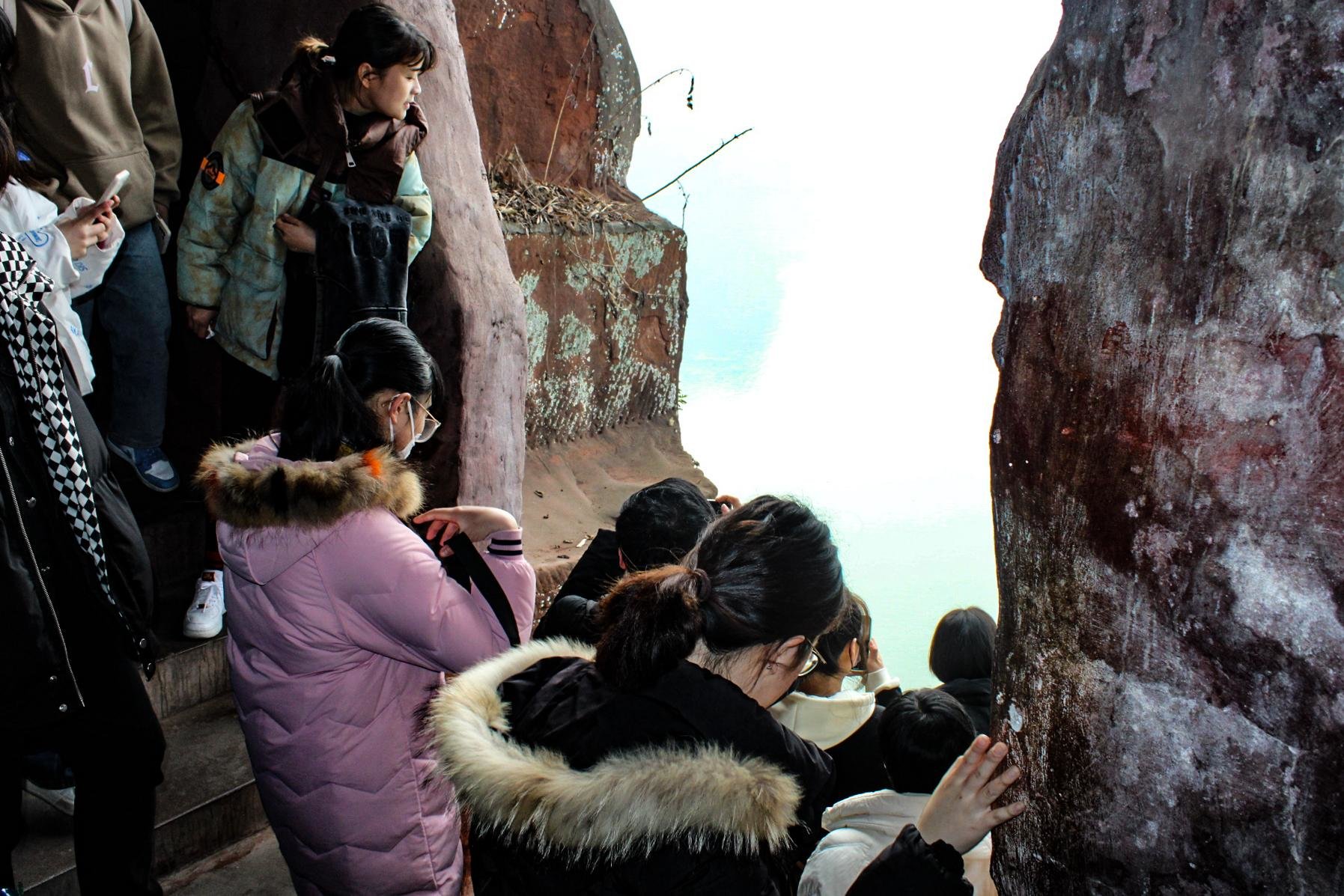 通往大佛脚底的通道很狭窄陡峭,人与人之间保持一米距离很难,不过这个时候出来旅游的大多数是“阳康”。