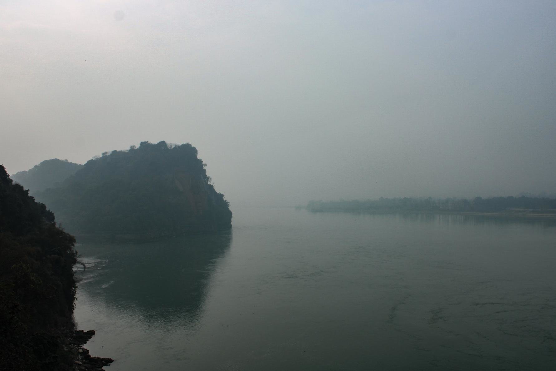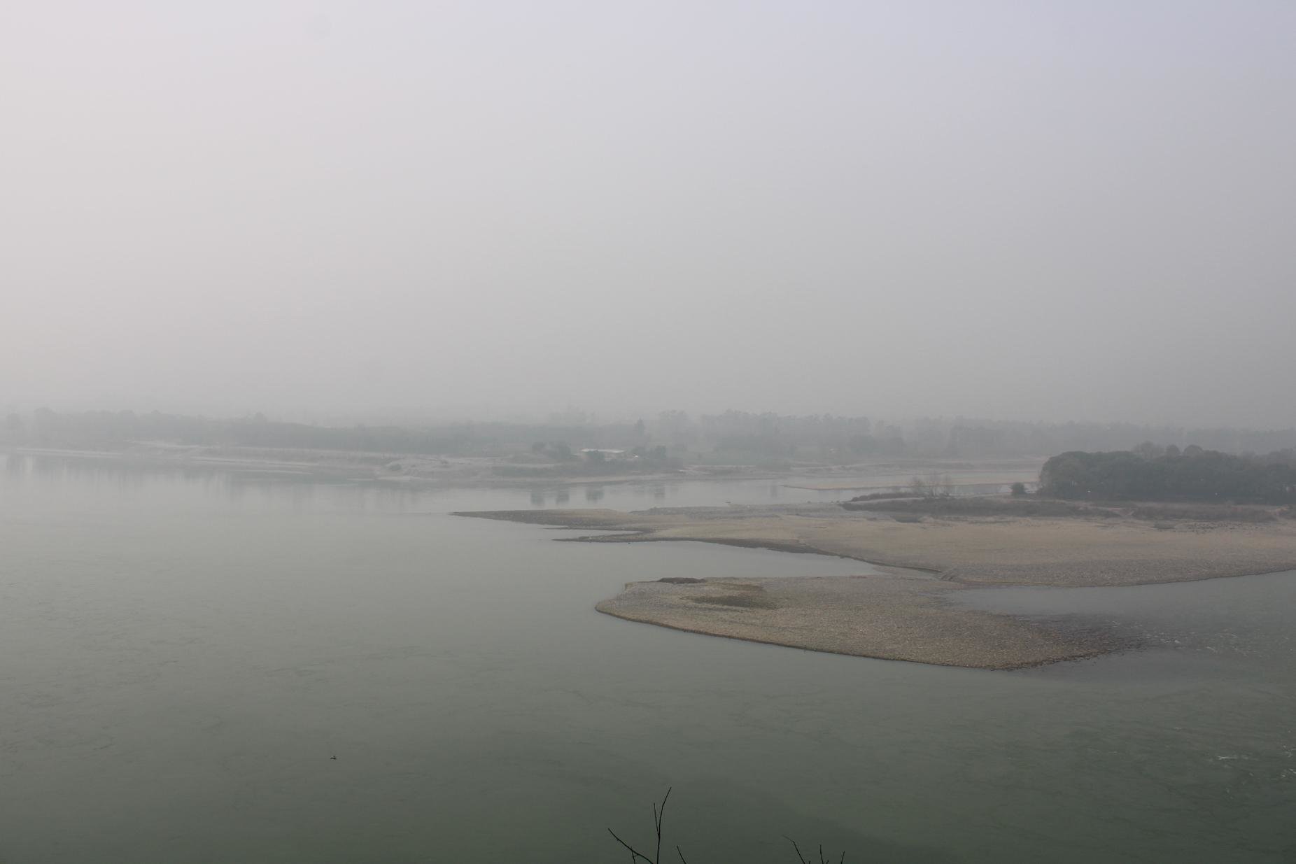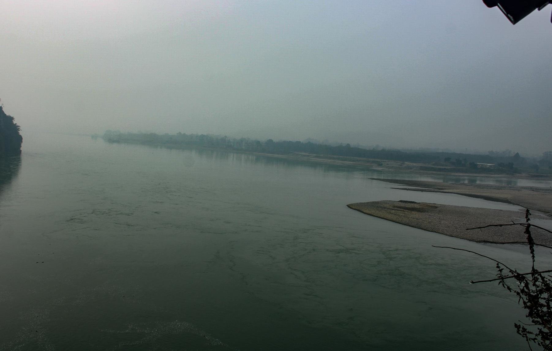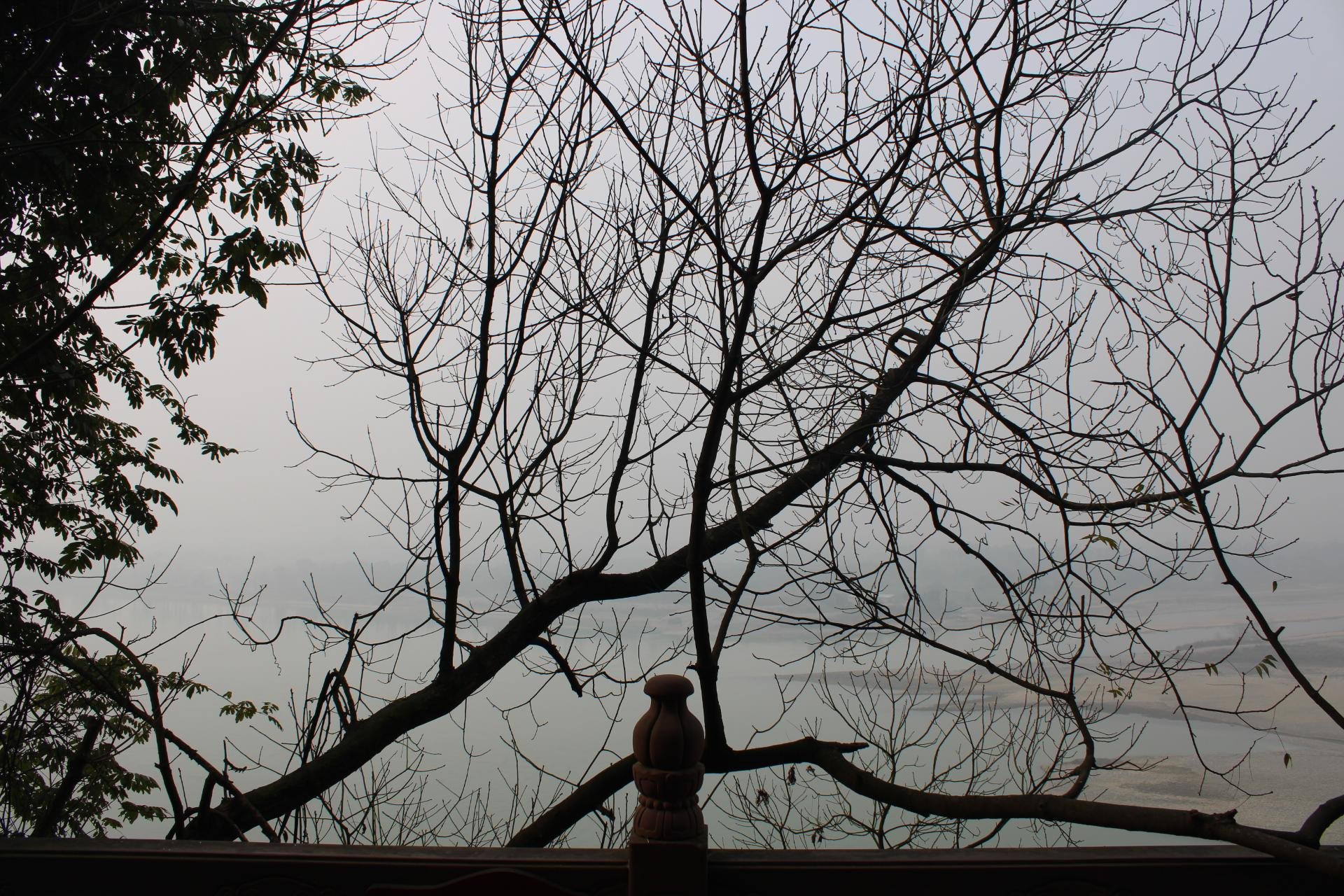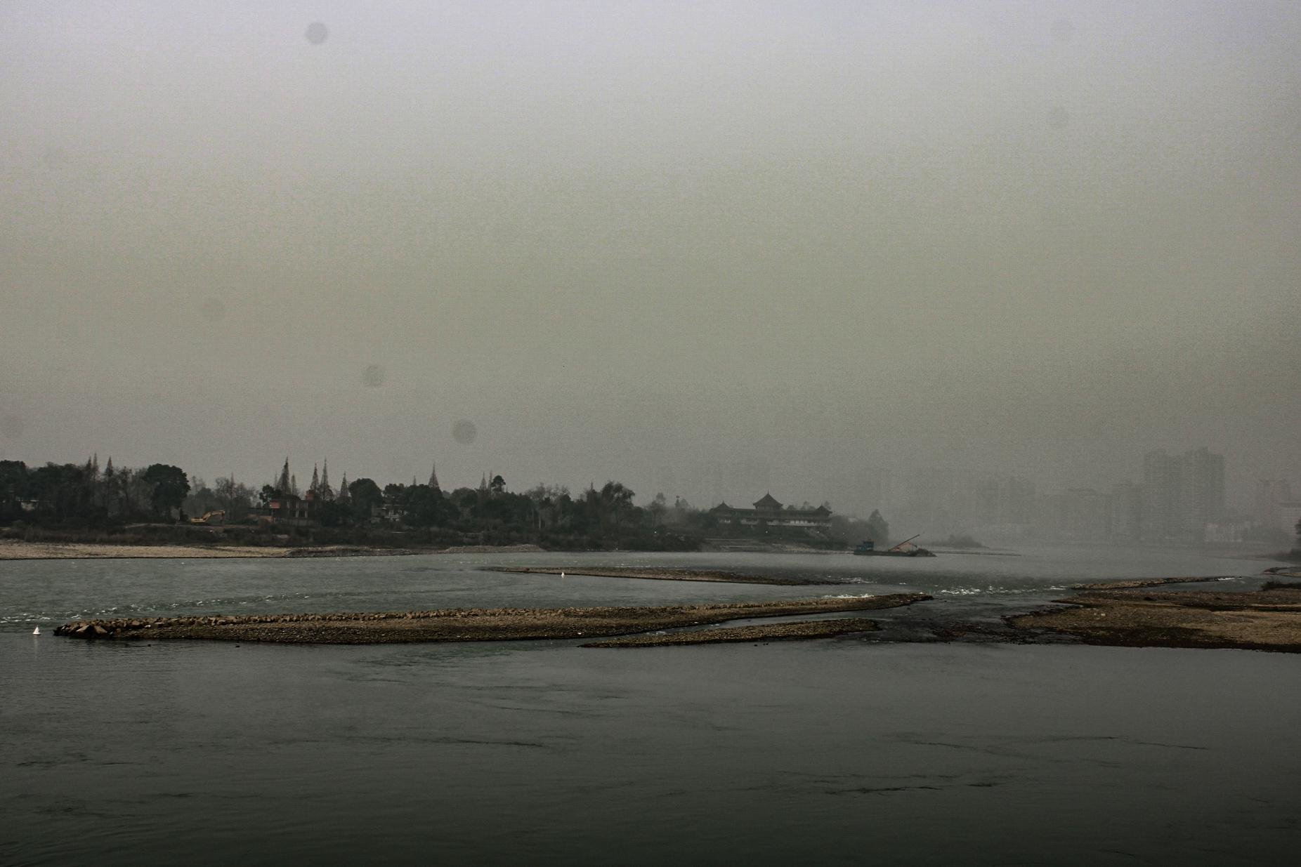 是日江上有雾,想要极目不易。有水之地必有烟,盖水汽蒸腾作用也。
