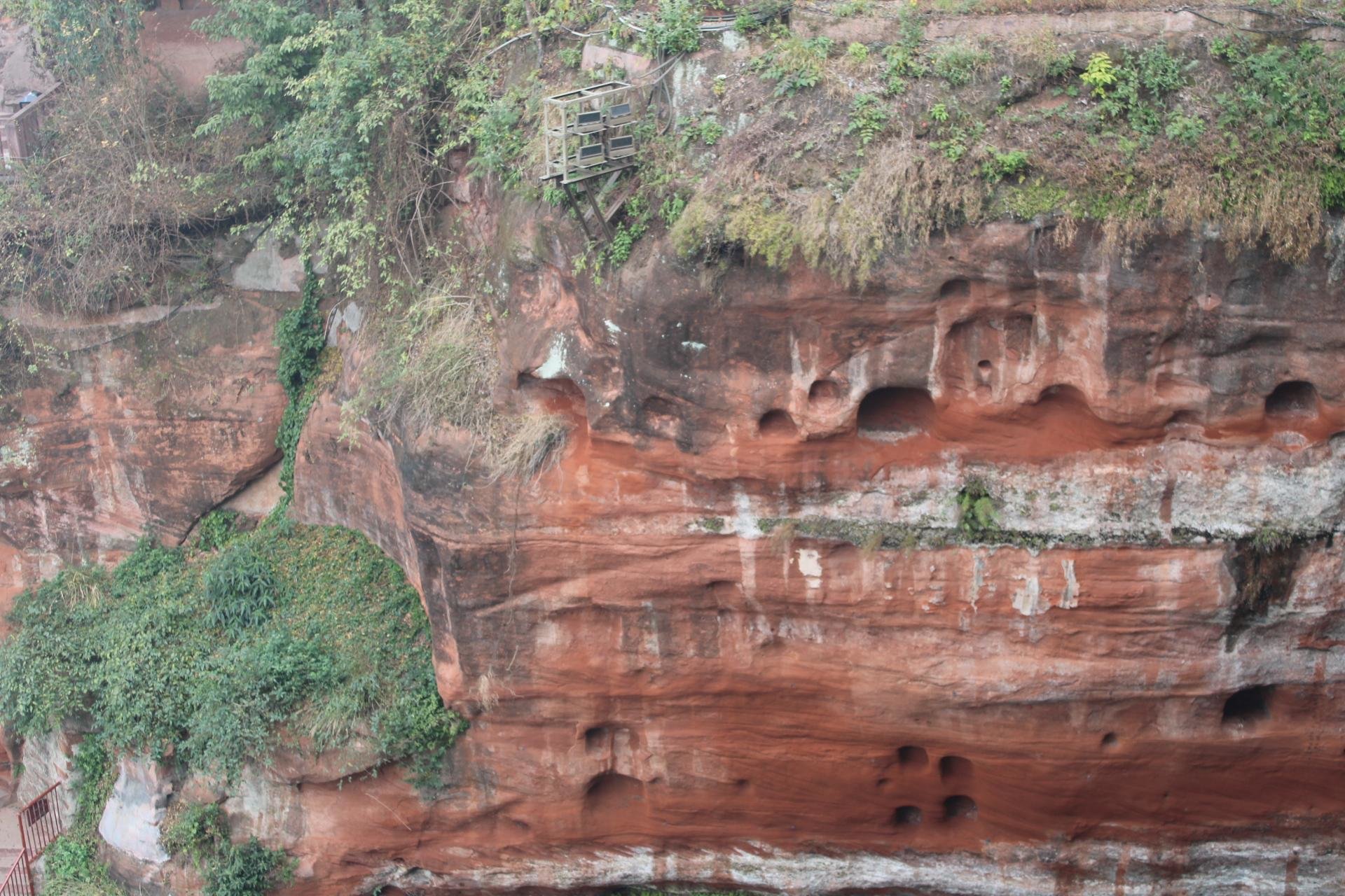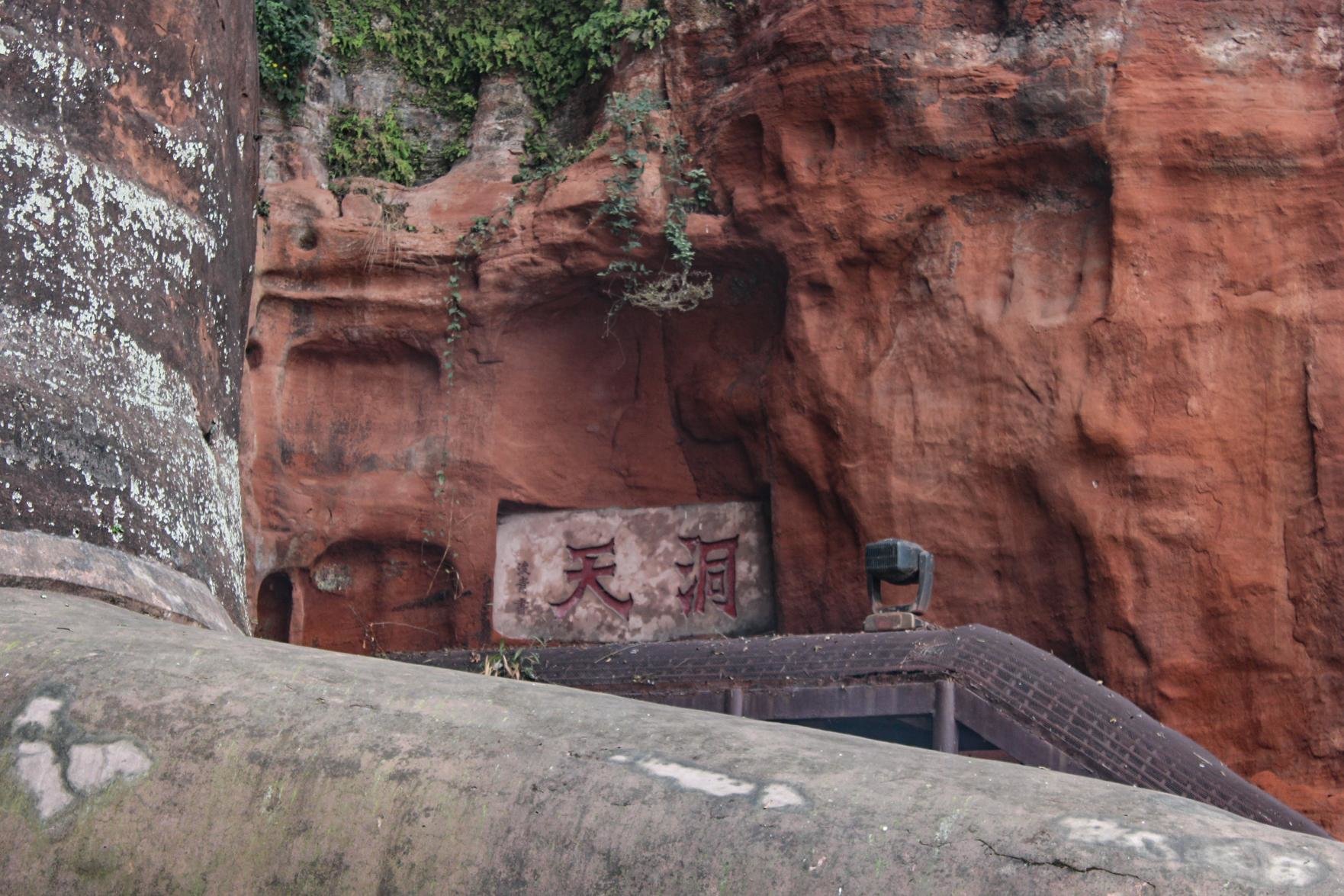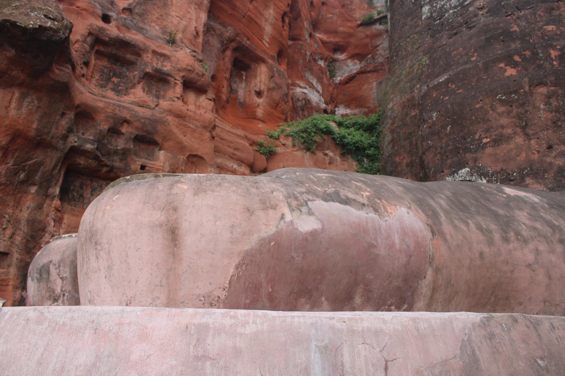 下往大佛足部的通道何止一个“险”字了得,由此可知当年没有现代科技加持之下的建造难度了,所谓“移山填海”不过如是。