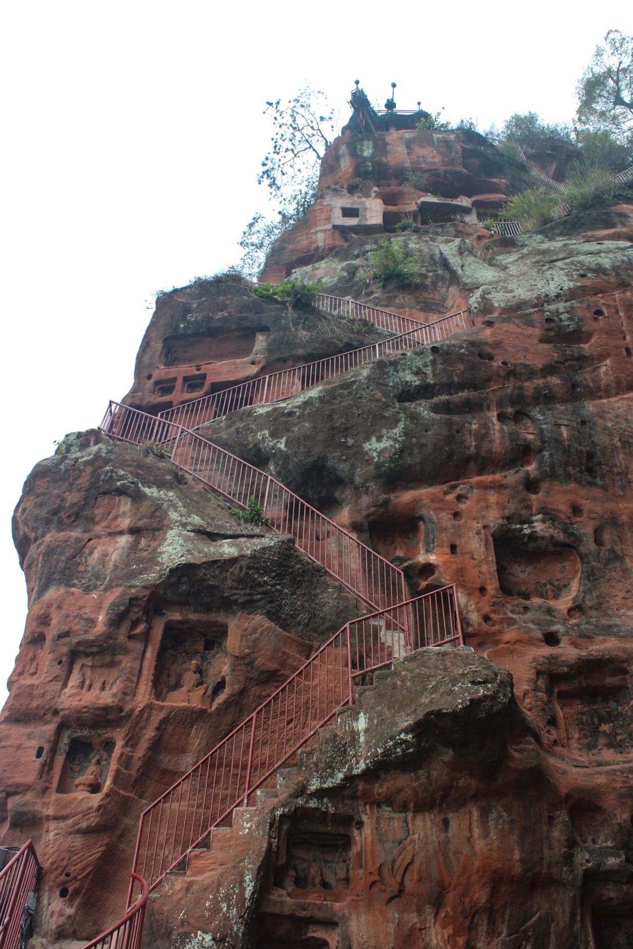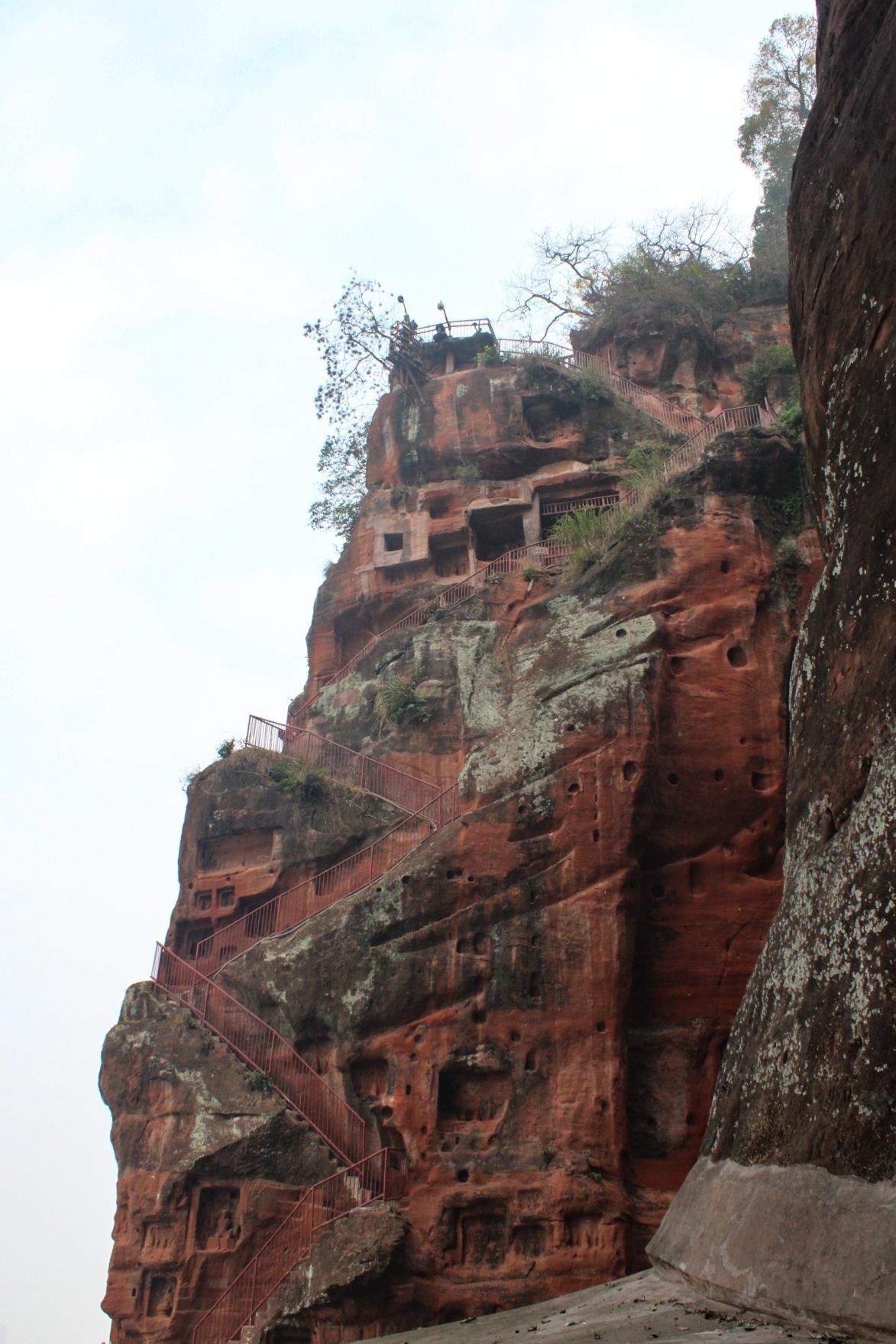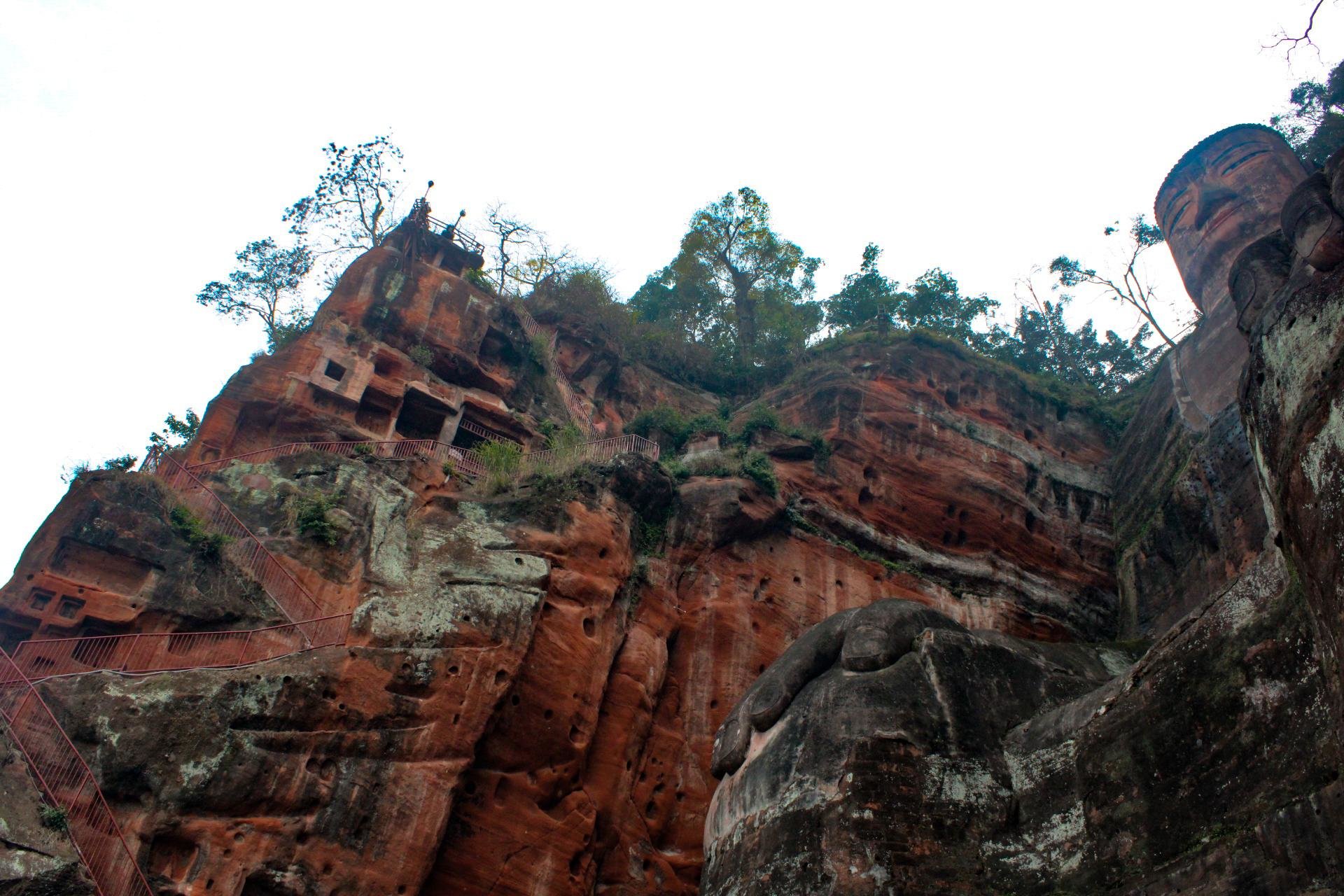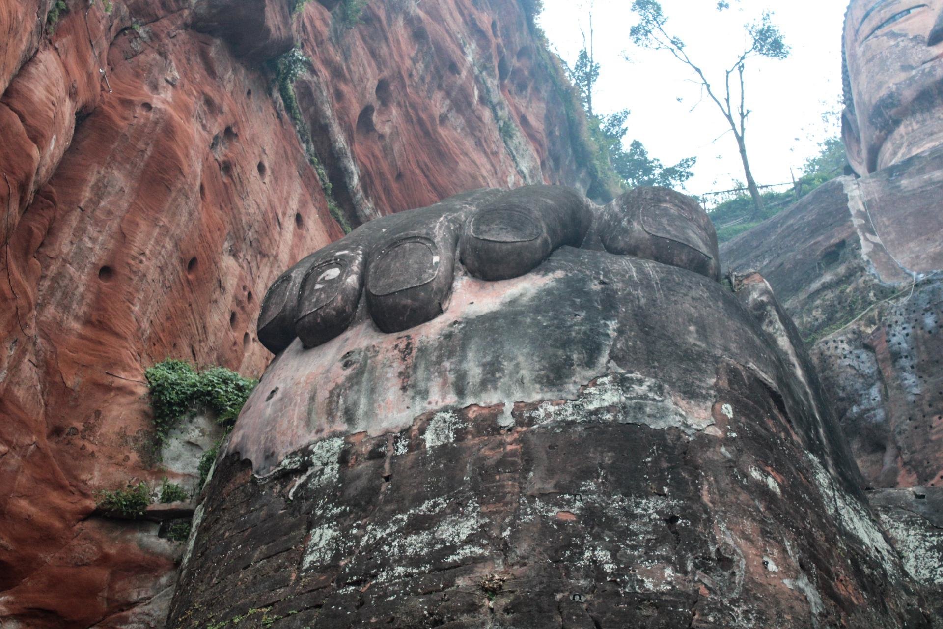 下往大佛足部的通道何止一个“险”字了得,由此可知当年没有现代科技加持之下的建造难度了,所谓“移山填海”不过如是。